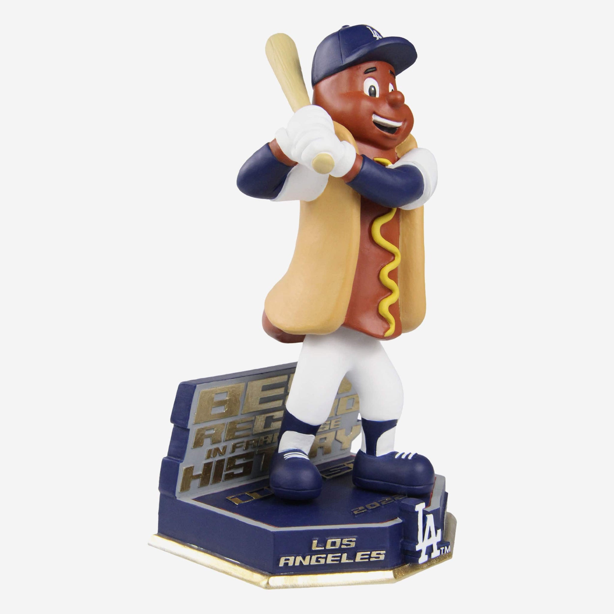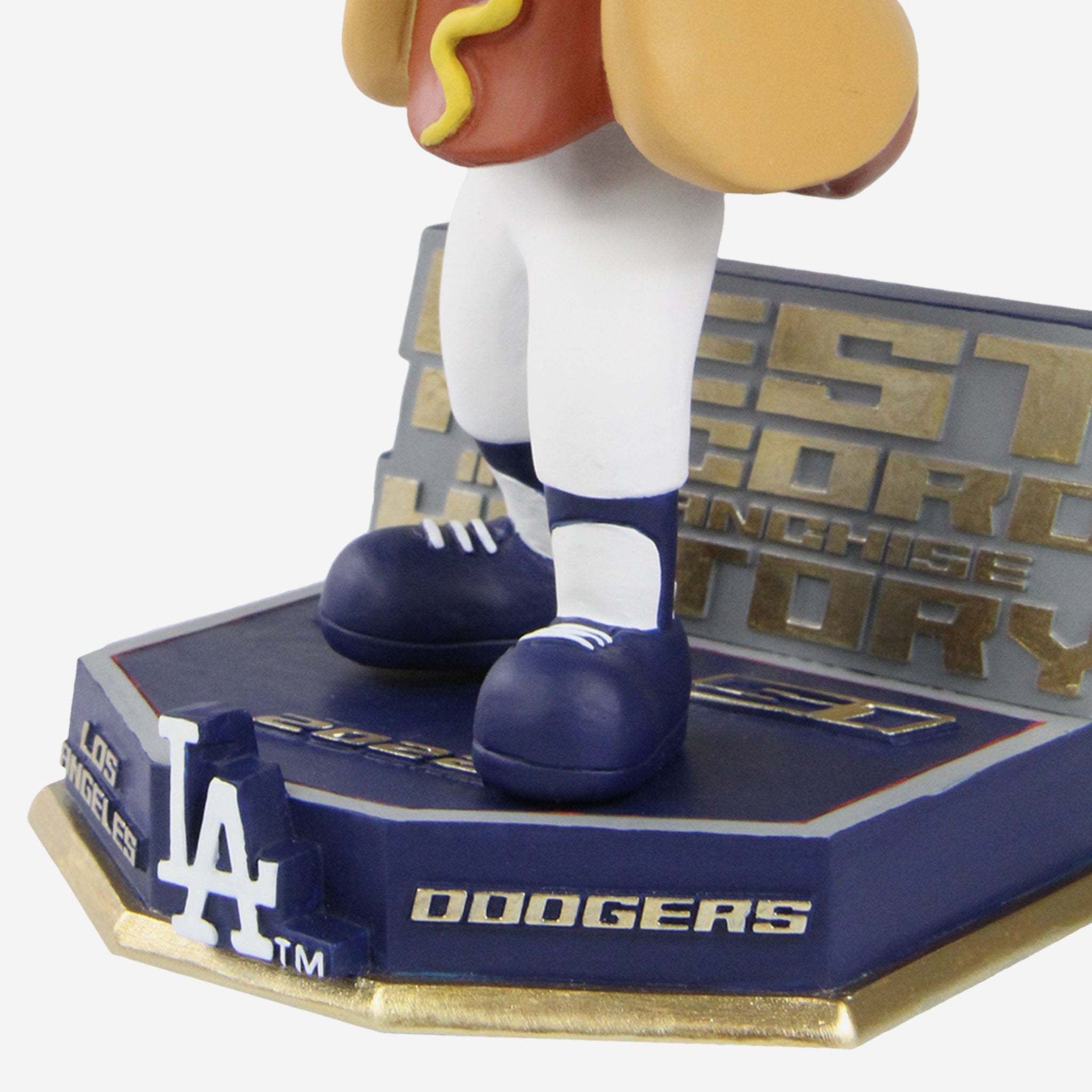 Oh, hot dog! This Dodger Dog Los Angeles Dodgers Best Record In Franchise History Mascot Bobblehead is ready to throw an historic regular season celebration bolder than a hot dog with mustard, ketchup, relish, sauerkraut, AND onions.