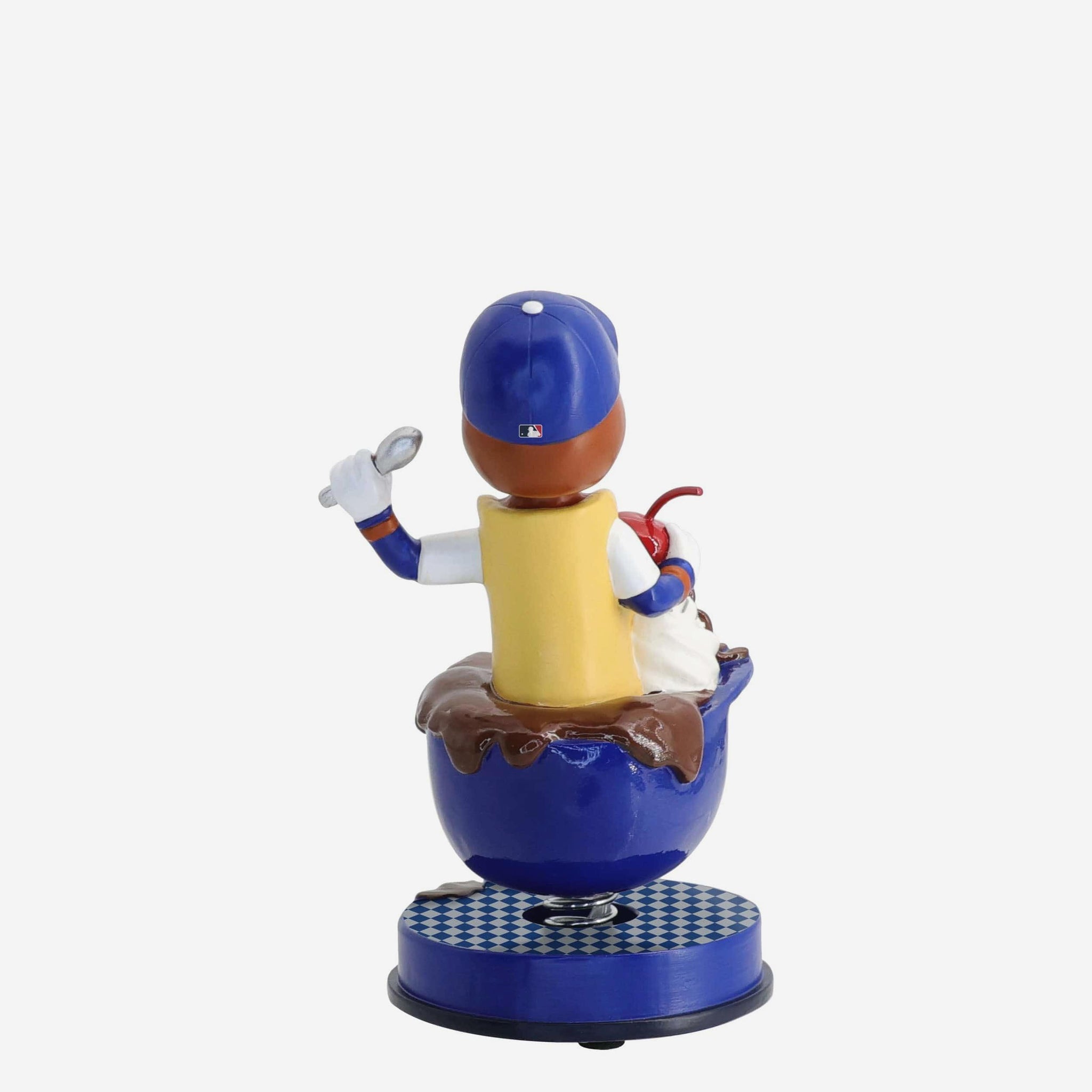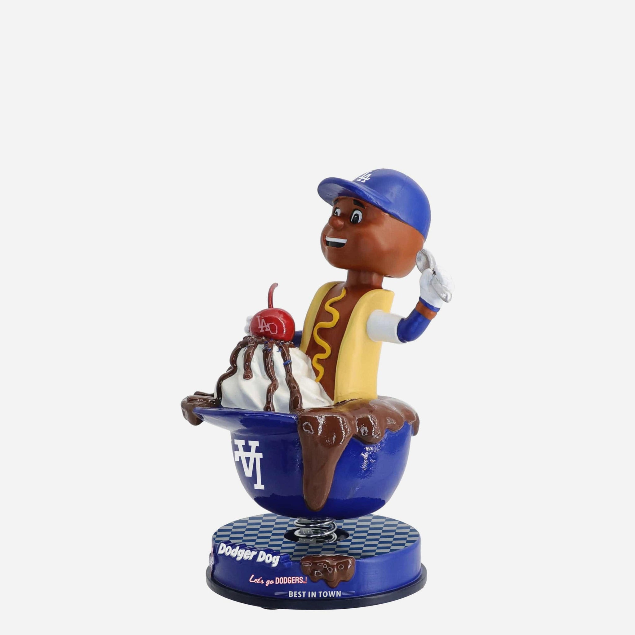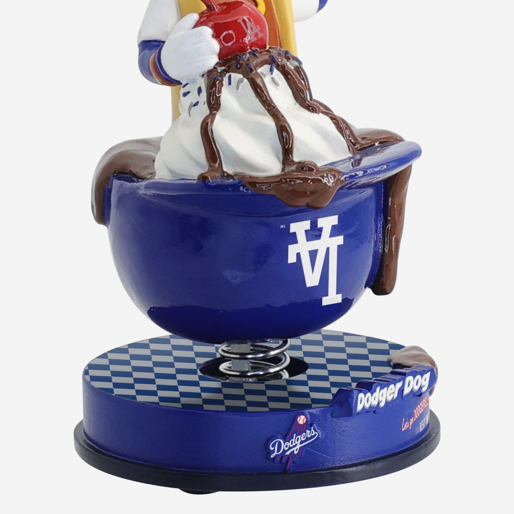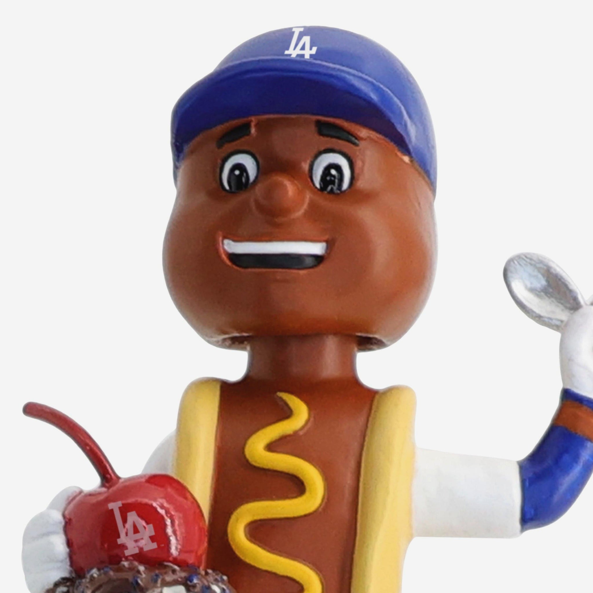 Dodger Dog is serving up team spirit, one scoop at a time! Add some flavor to your fandom with the Dodger Dog Los Angeles Dodgers Ice Cream Helmet Mascot Mini Bobblehead.