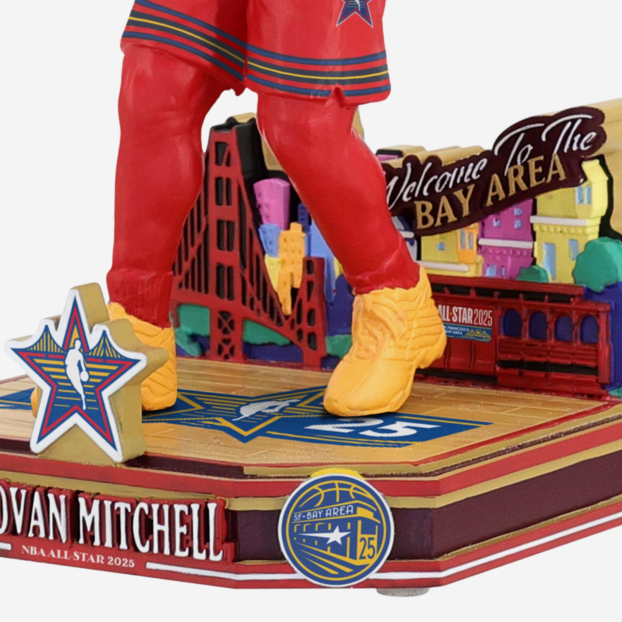 Welcome to the Bay Area! Hop on board the trolley car and take a Golden State sightseeing trip with the Donovan Mitchell Cleveland Cavaliers 2025 NBA All-Star Bobblehead.