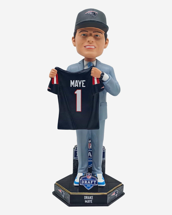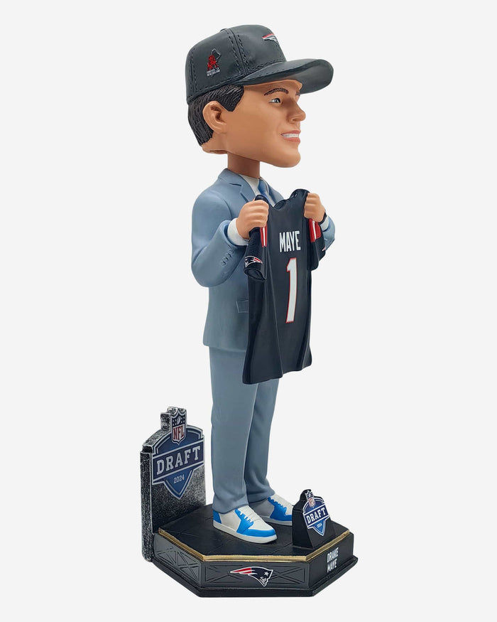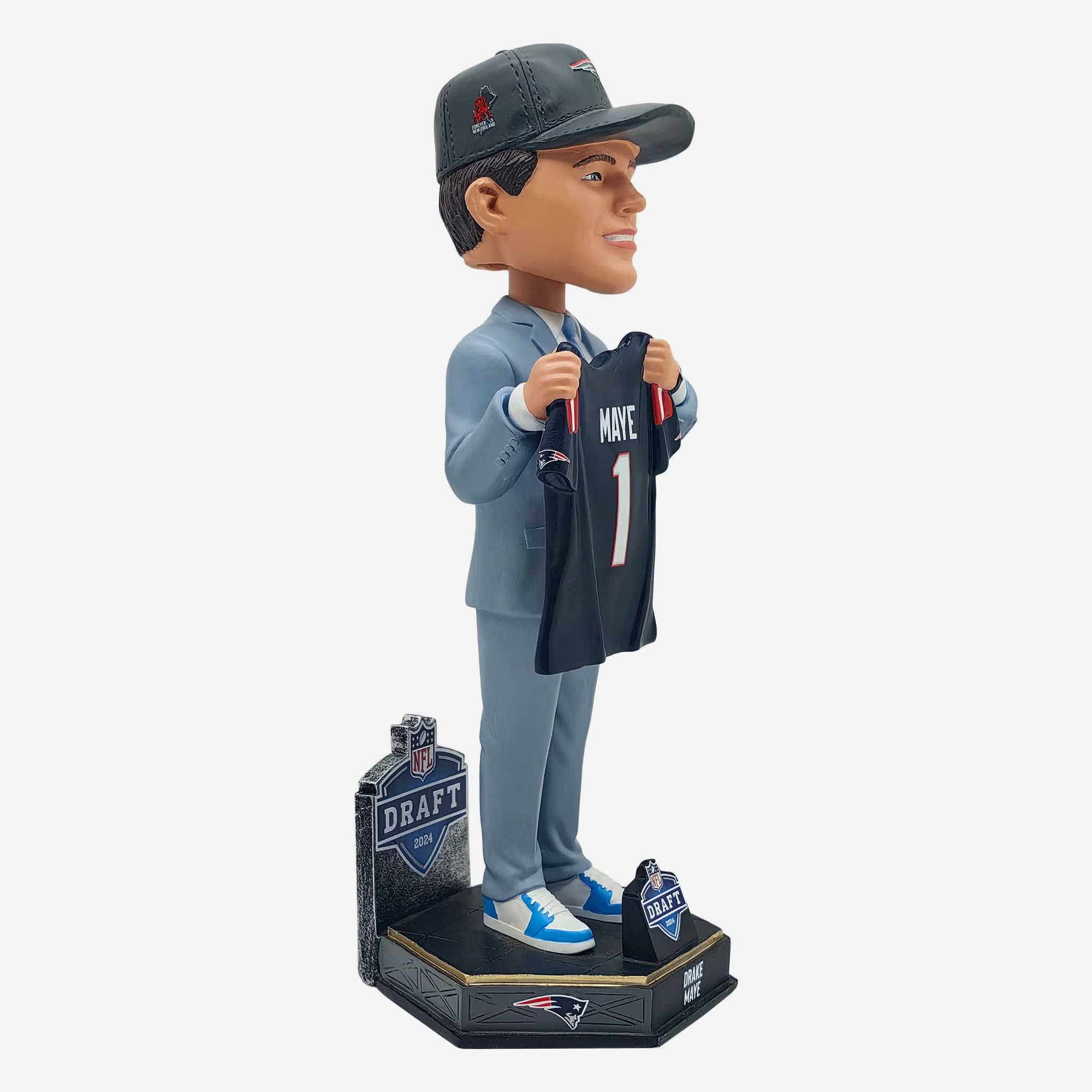 Draft night is just the beginning. Get ready to go from a Saturday star to a Sunday stud with this Drake Maye New England Patriots 2024 Draft Pick Bobblehead!