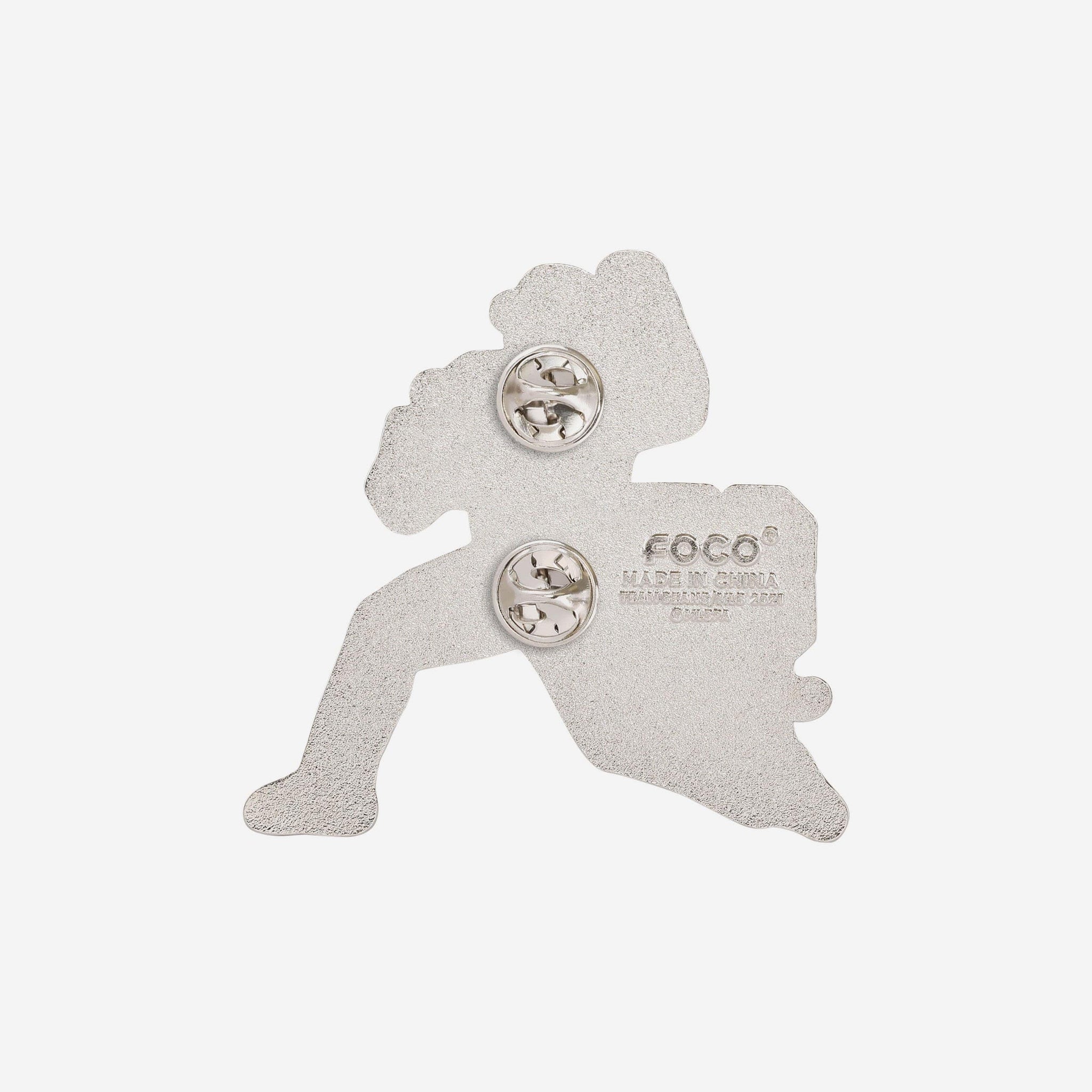 - Player pin depicts player wearing his gameday uniform in an action pose, jersey number display, and signature display