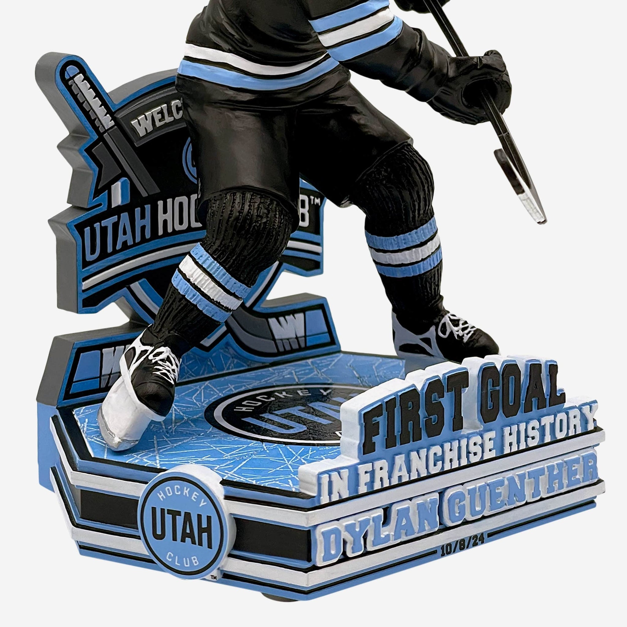 Guenther gets the first (of many) in franchise history! Immortalize this moment forever with the Dylan Guenther Utah Hockey Club Franchise First Goal Bobblehead.
