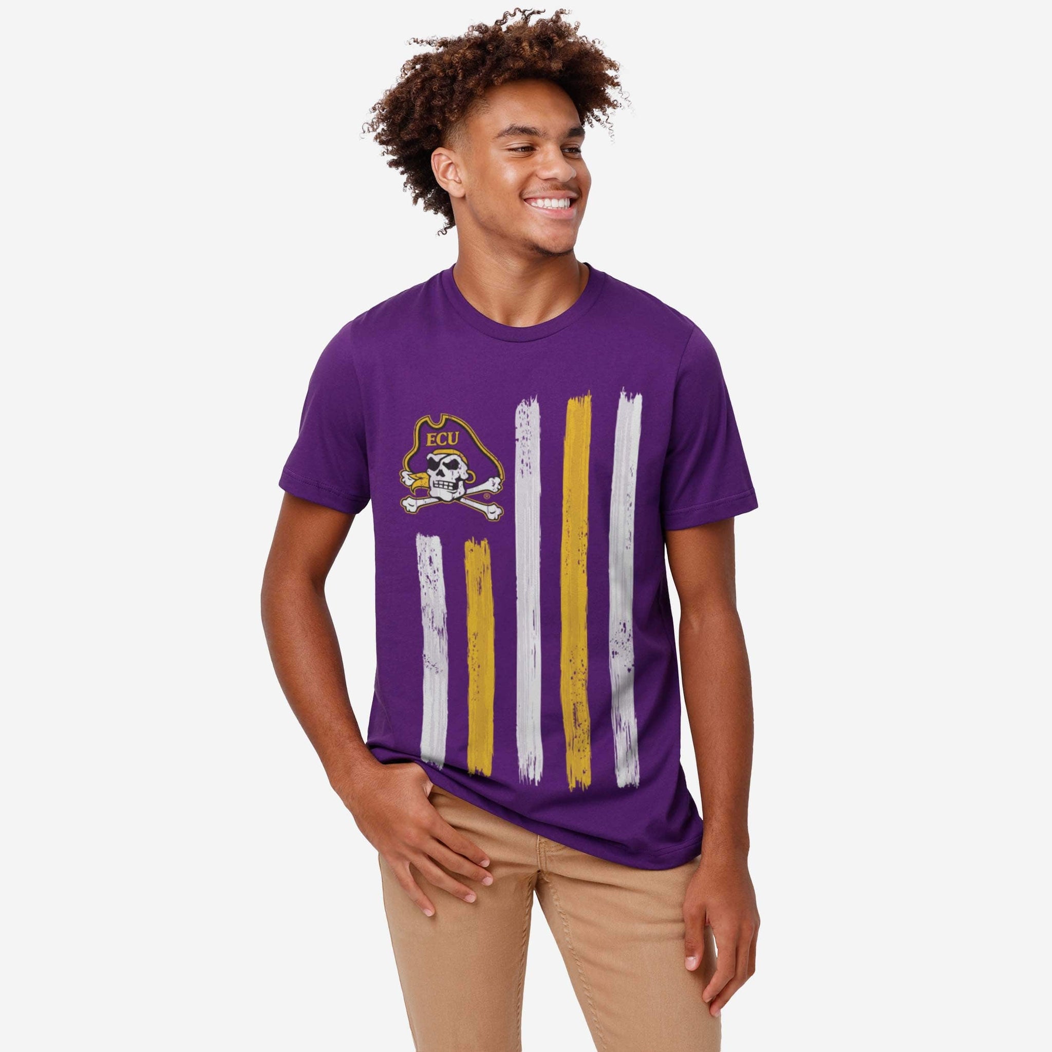 You wave your team flag high on gameday. Now you can wear it too! Look good, feel good, and get ready to let everyone know that you’re the MVP of fan fashion with the East Carolina Pirates Brushstroke Flag T-Shirt.