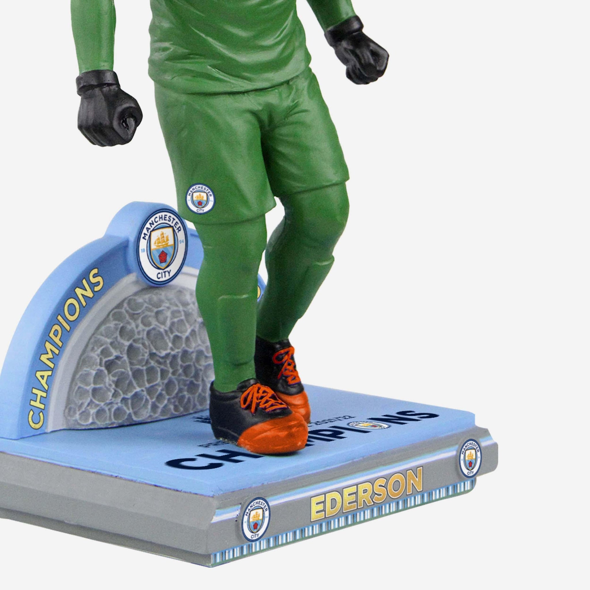 You may not have been able to celebrate with your favorite superstar on the pitch, but you CAN celebrate with him in your collection thanks to this Ederson Santana de Moraes Manchester City FC Premier League Champions Bobblehead!