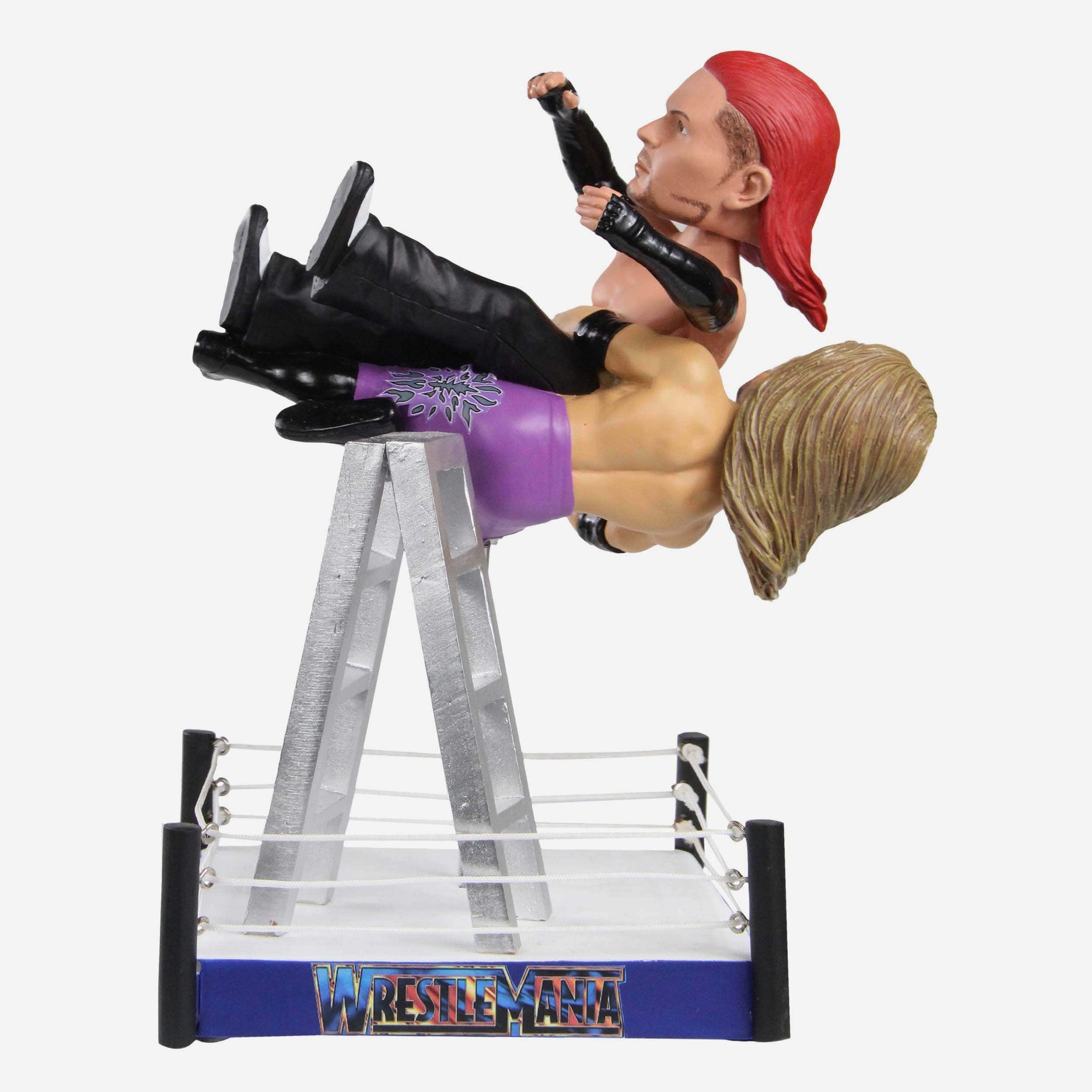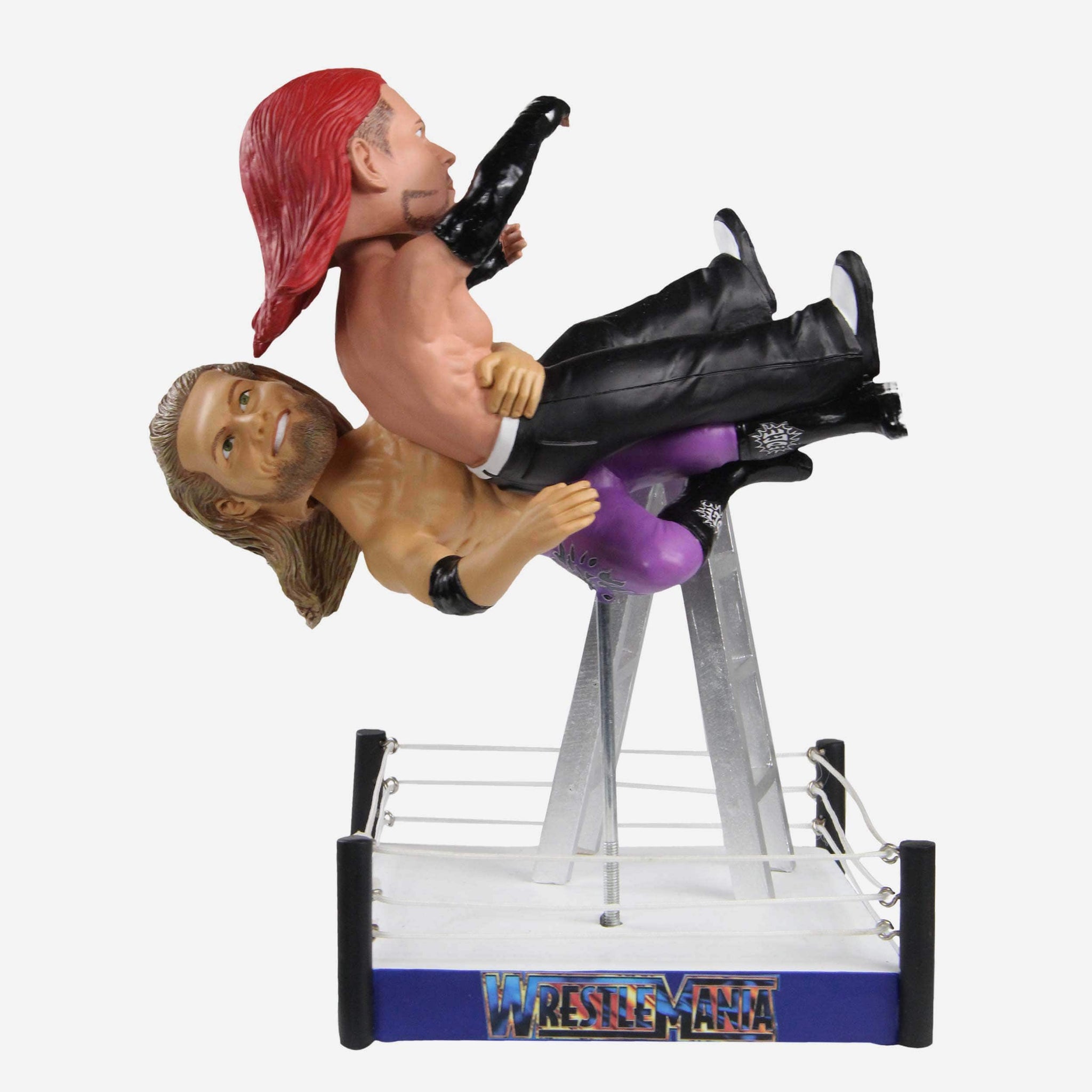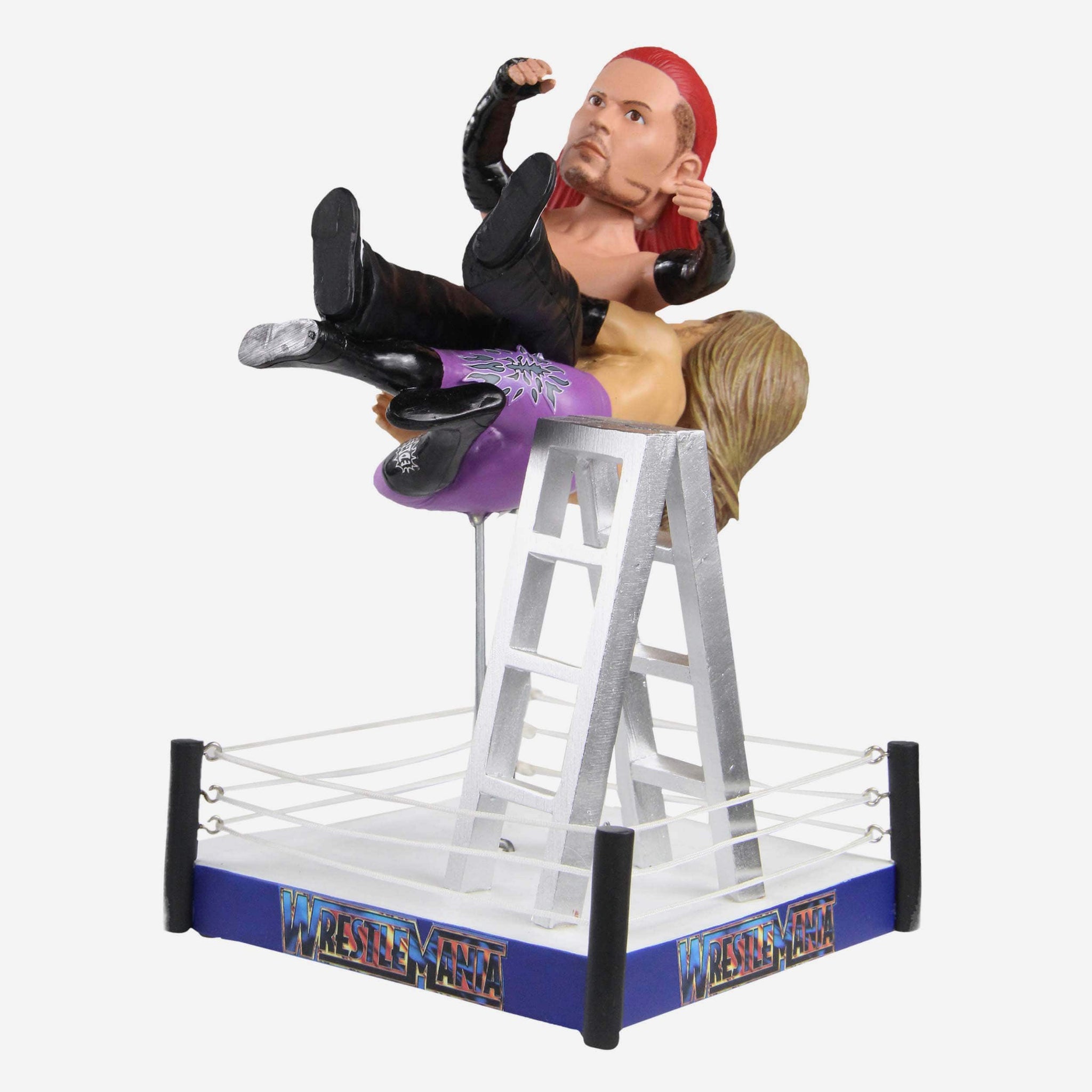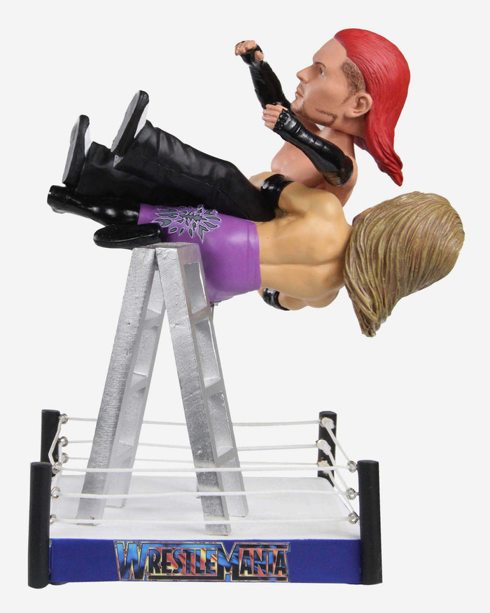 Two decades ago, Edge and Jeff Hardy took their feud to new heights. Relive WrestleMania X-Seven's most X-TREME moment with this Edge vs. Jeff Hardy WWE WrestleMania Moment Dual Bobblehead!