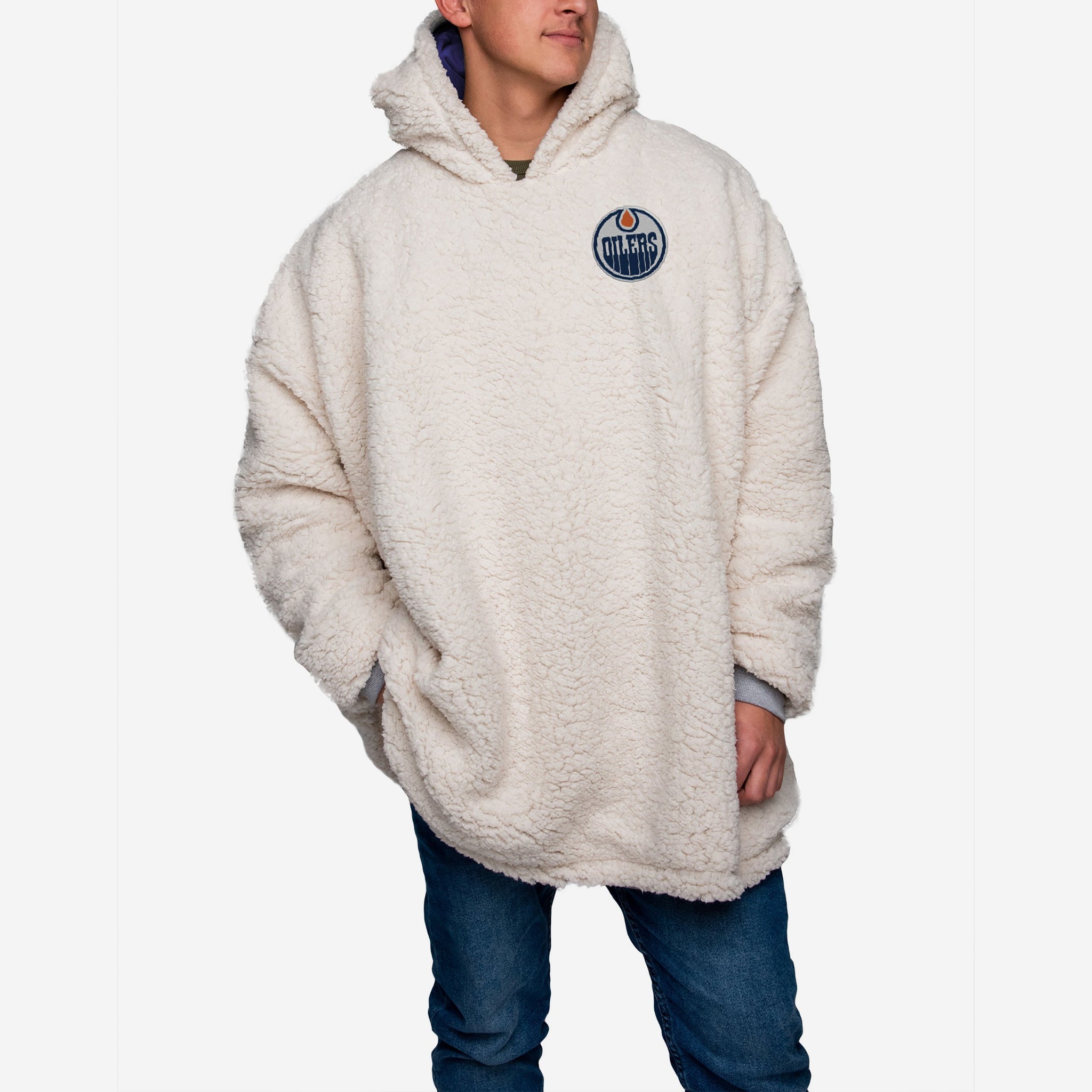 Choosing between showing off your team spirit, looking good, and enjoying some elite relaxation is a tough decision. Borderline impossible. Good news. You don't have to choose. Because you can enjoy that triple threat of fan awesome when you rock this Edmonton Oilers Reversible Big Logo Hoodeez.