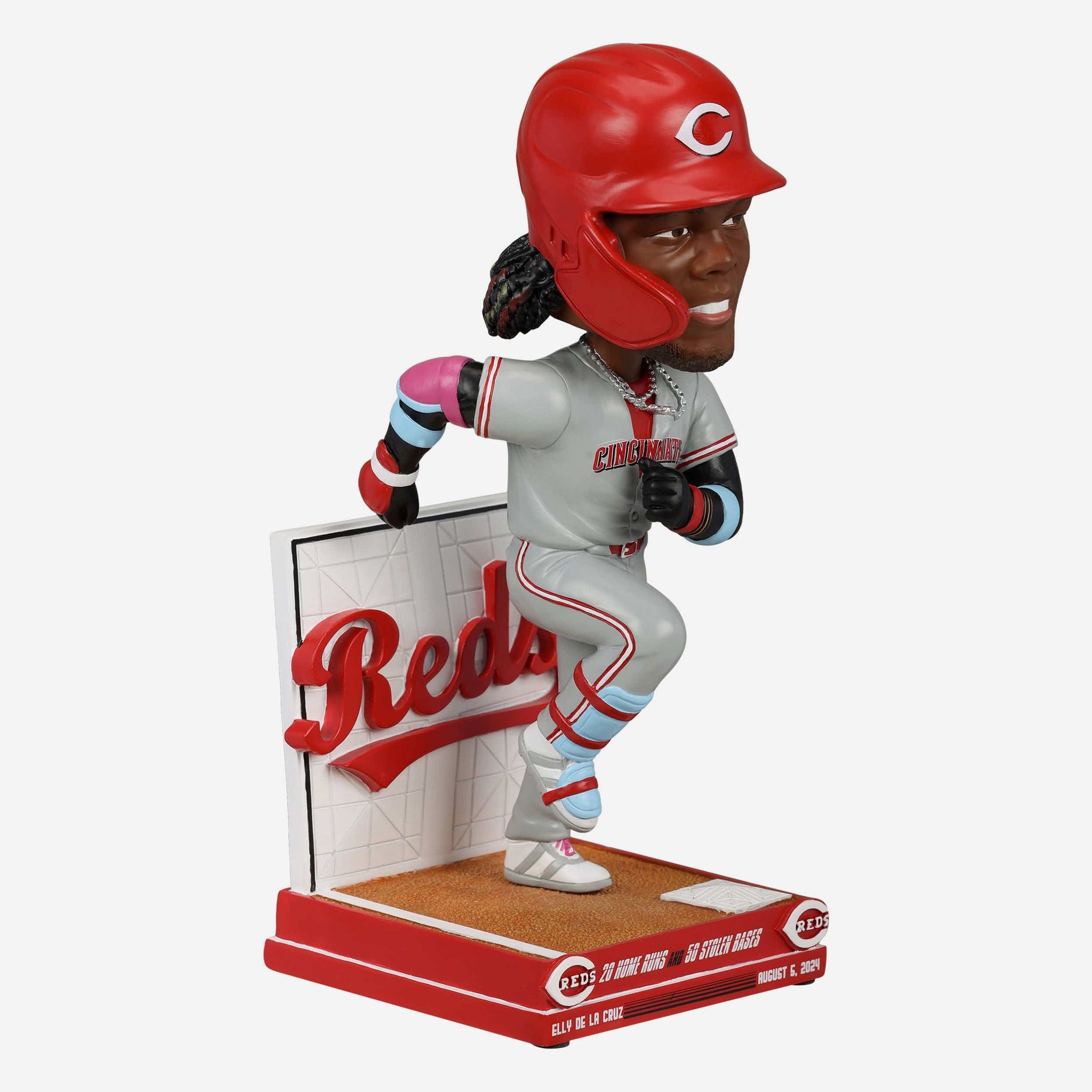 Elly De la Cruz is the third Cincinnati Red to hit 20 home runs and steal 50 bases in one season! Celebrate his latest milestone with the Elly De La Cruz Cincinnati Reds 20 Home Runs & 50 Stolen Bases Bobblehead.