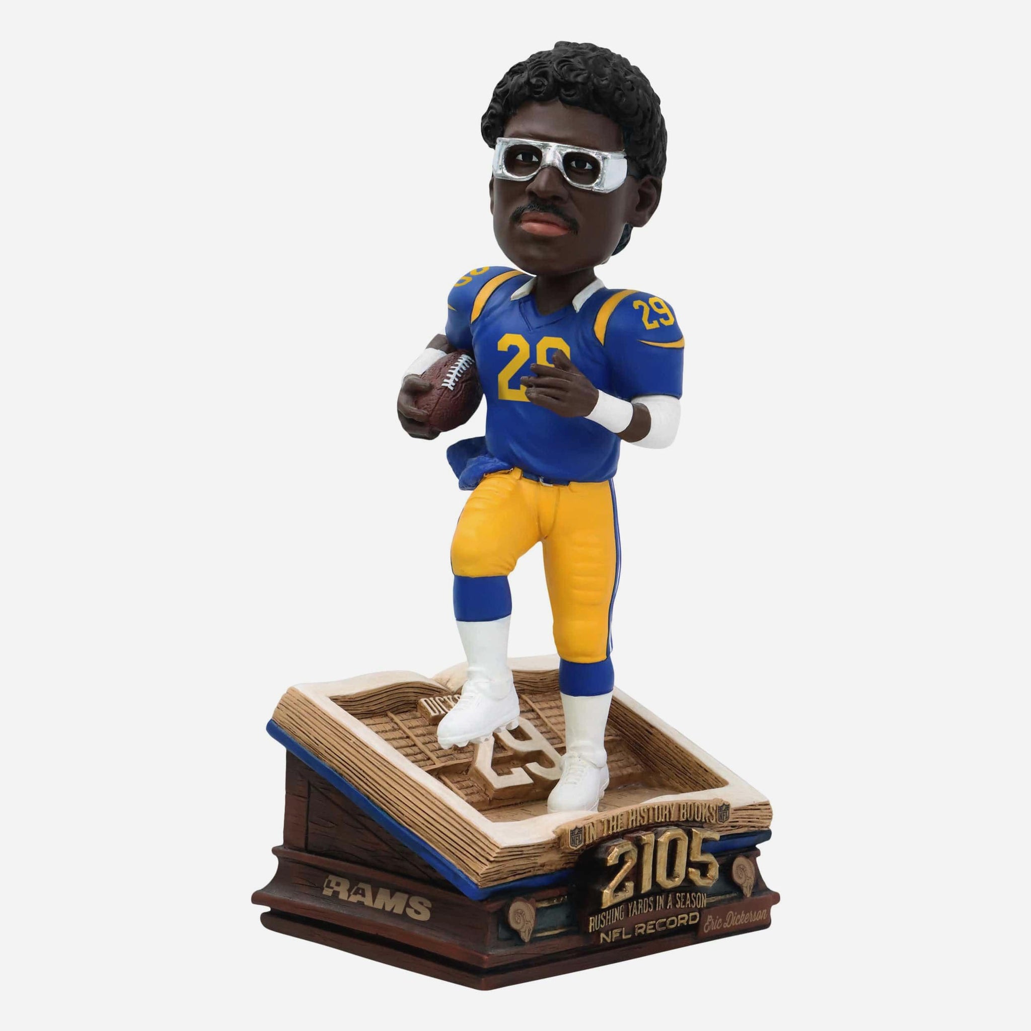 Rewrite the record books! Relive one of the most dominant seasons in NFL history with this Eric Dickerson Los Angeles Rams Single Season Yards Record Book Bobblehead, celebrating his legendary 1984 campaign.