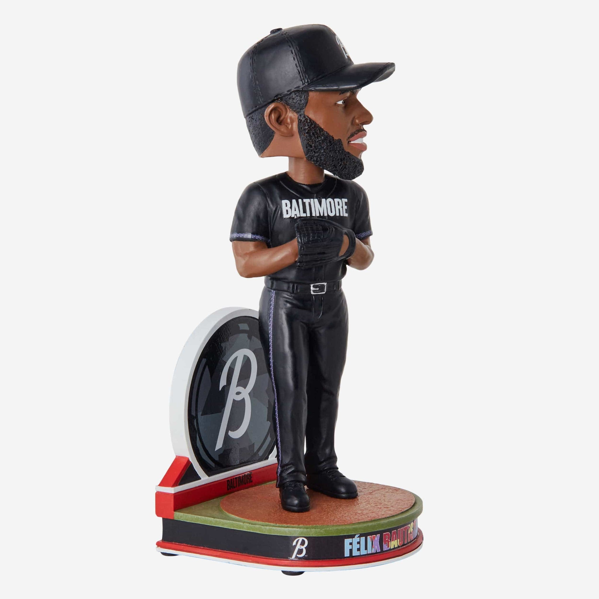- Thematic, team-colored backdrop with alternate team logo display and “BALTIMORE” text display to bring the excitement from Charm City to your collection
