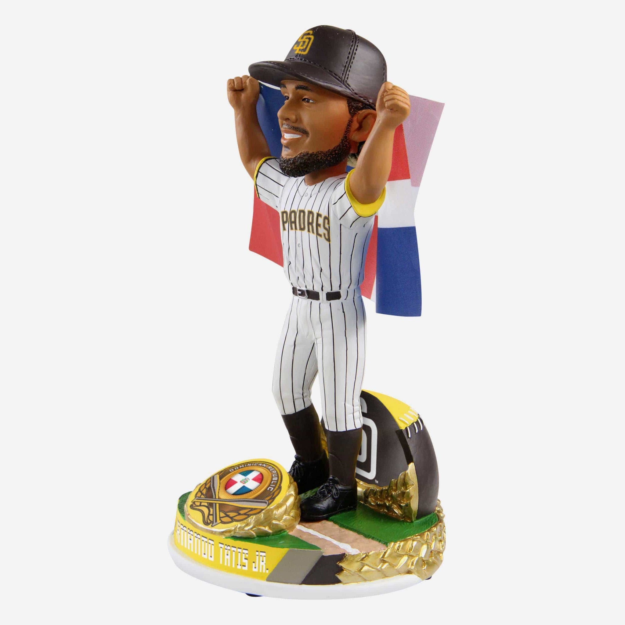 Plant your flag as the best fan around and showcase your team pride and your player's national pride with this Fernando Tatis Jr. San Diego Padres National Flag Bobblehead!
