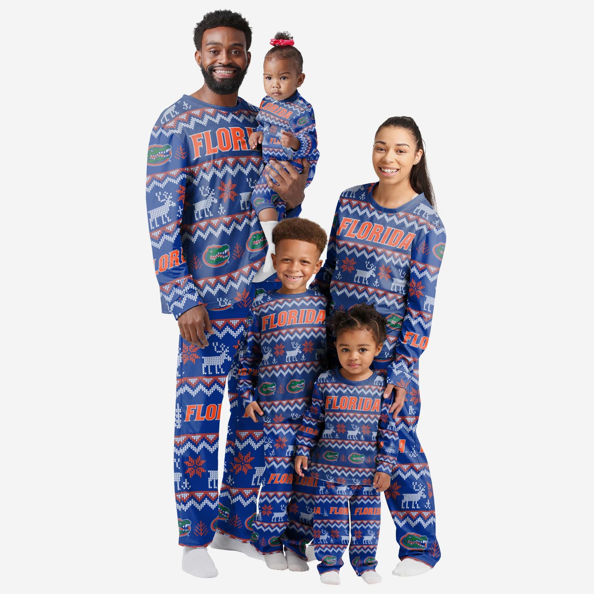 Get your young fan started early this holiday season in these Florida Gators Infant Ugly Pattern Family Holiday Pajamas! Your baby will absolutely love these matching Christmas pajamas! Make sure your infant enjoys sweet dreams filled with holiday joy by having them sleep in infant pajamas. Don’t forget to take your holiday photo with the whole family wearing matching Christmas pajamas!
