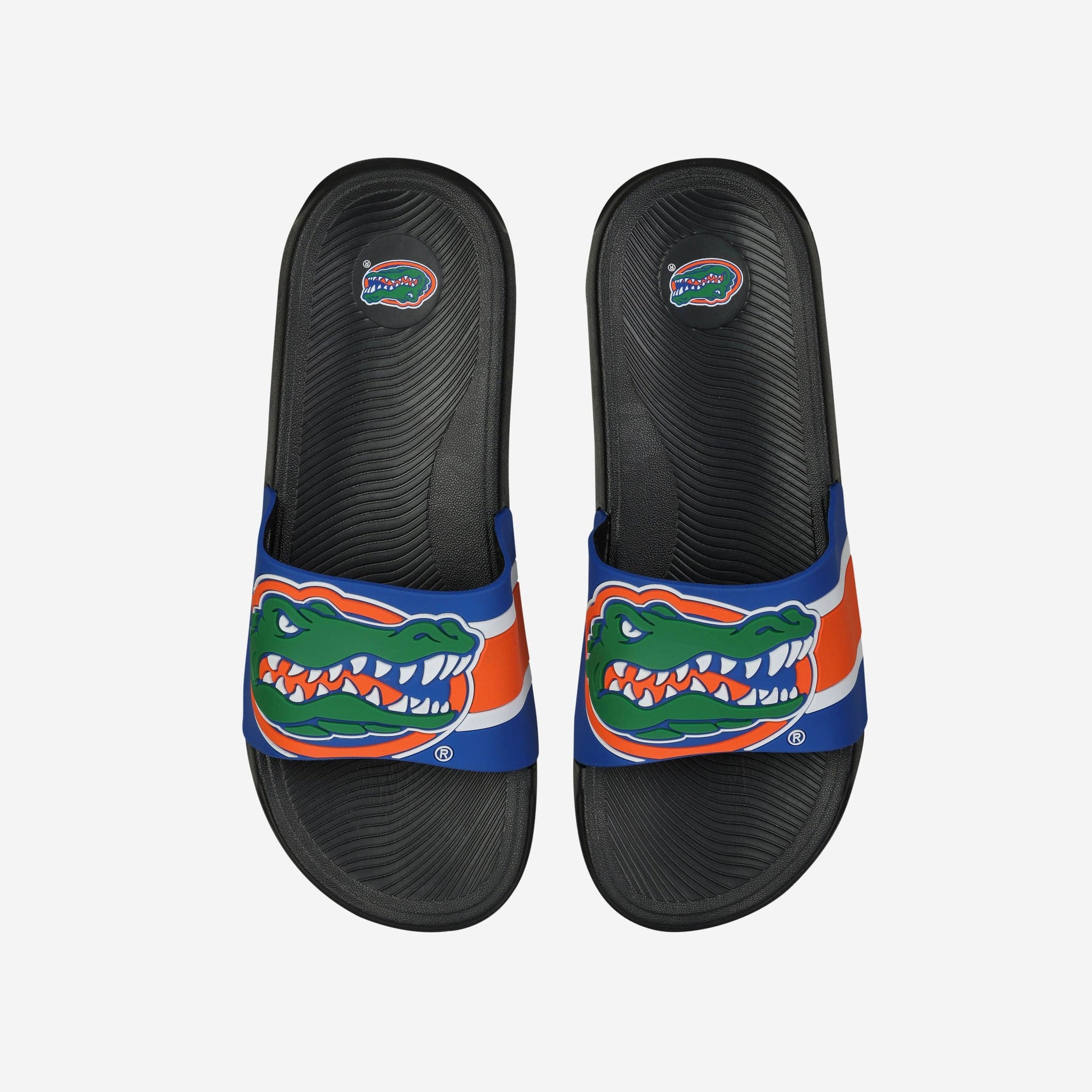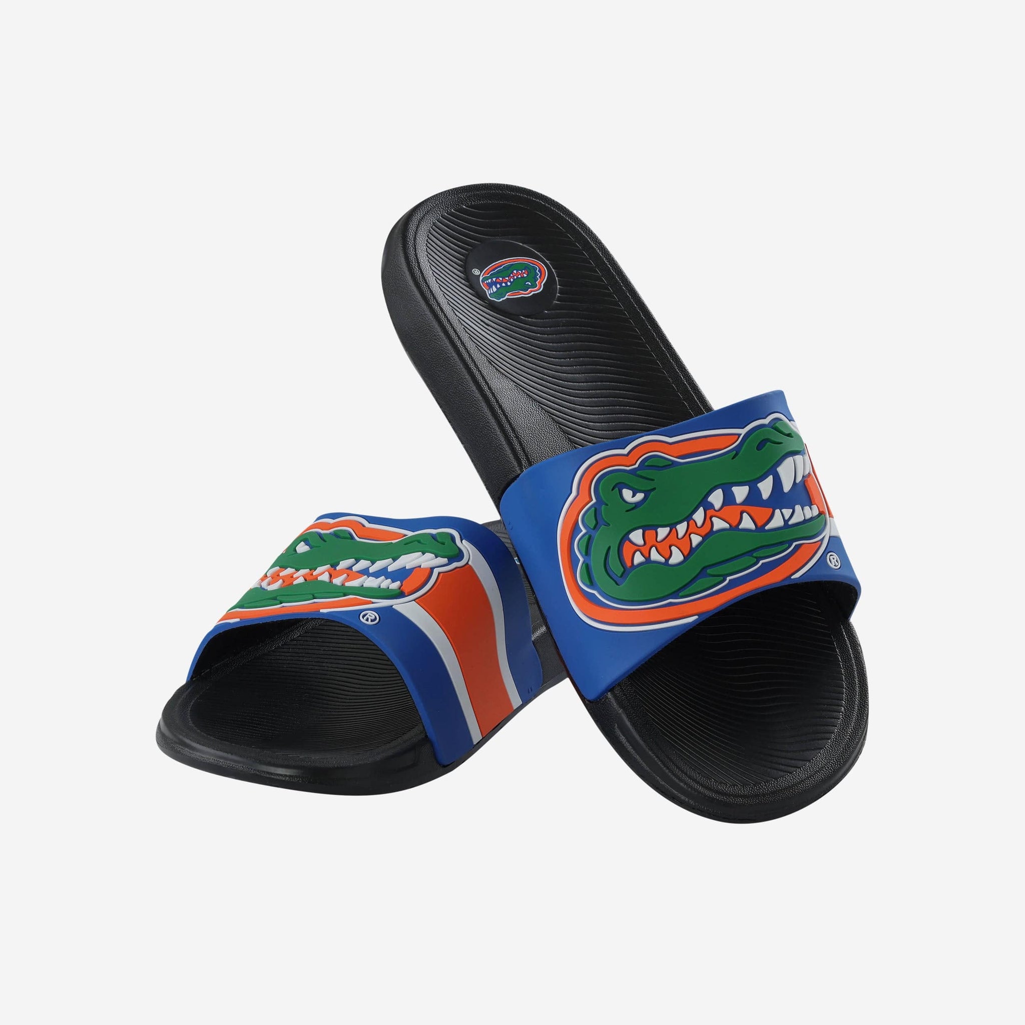 These Florida Gators Striped Big Logo Raised Slides give a whole new meaning to the idea of putting some pep in your step.