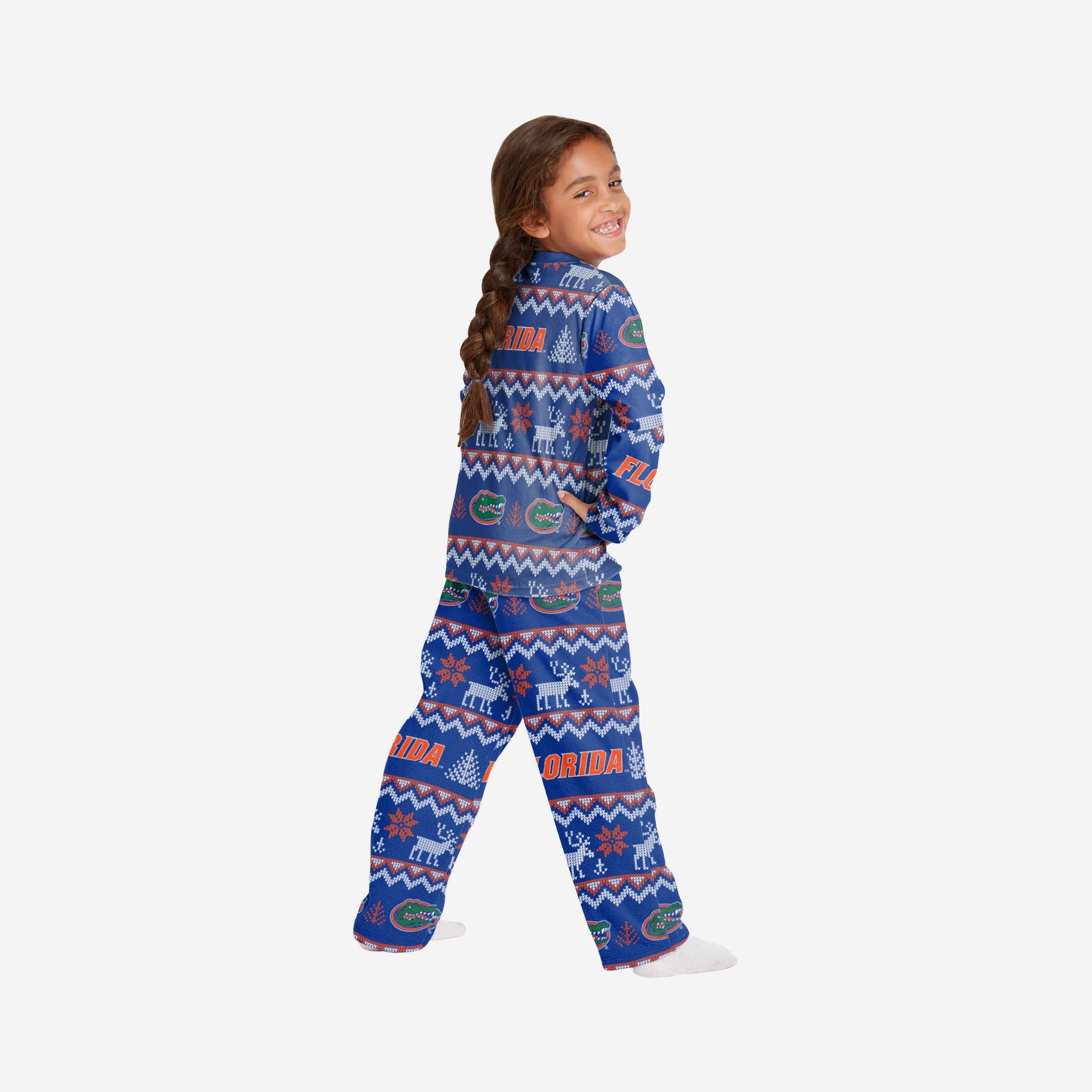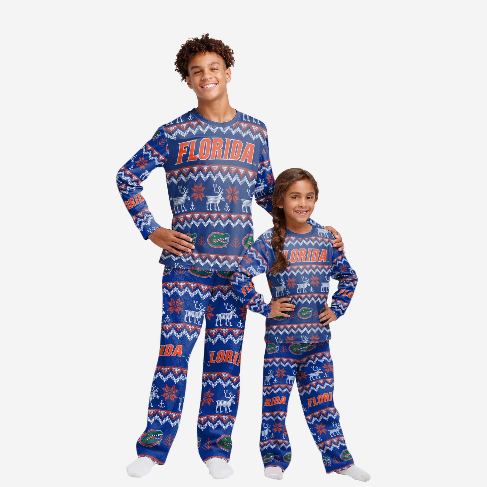 Get some matching family pajamas and dress to impress this holiday season! You won't want to miss these kids' team pajamas! These youth PJ's are comfortable and show off your team spirit in the form of some sweet youth jammies. Introducing the Florida Gators Youth Ugly Pattern Family Holiday Pajamas! Don't forget to take your holiday photo with the whole family wearing matching Christmas pajamas!