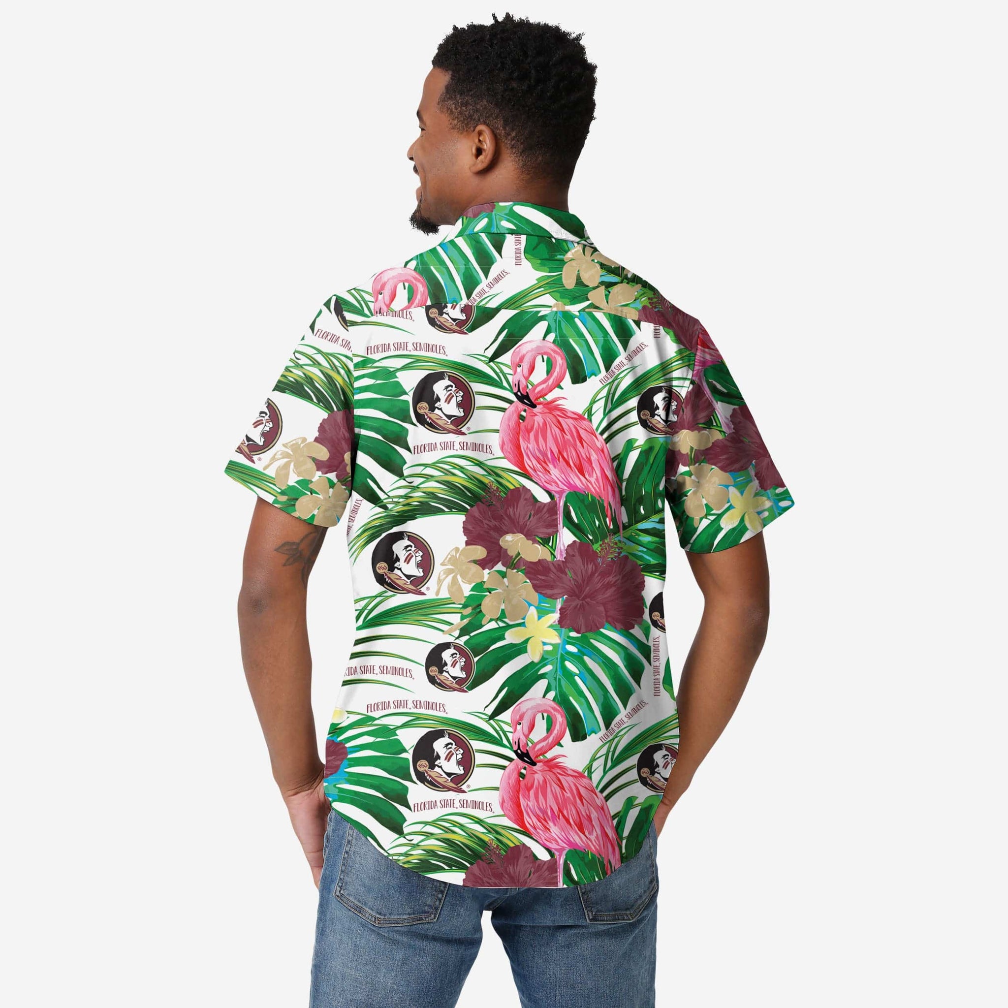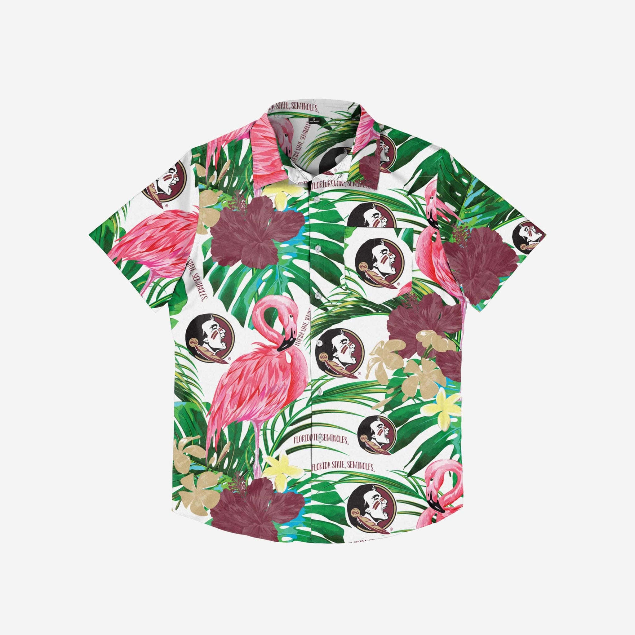 Aloha, party people! No need to set your watch - You're always on island time when you're rocking this Florida State Seminoles Flamingo Button Up Shirt.