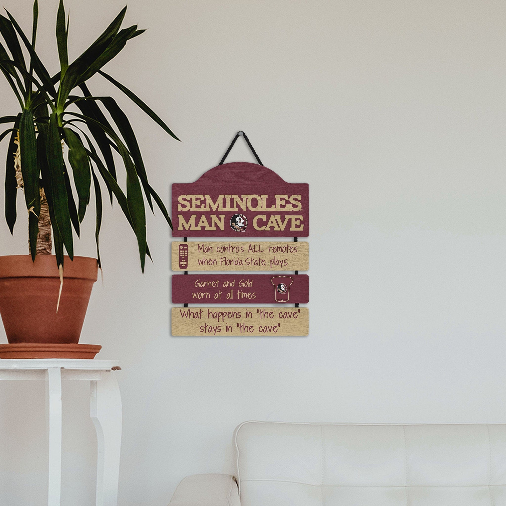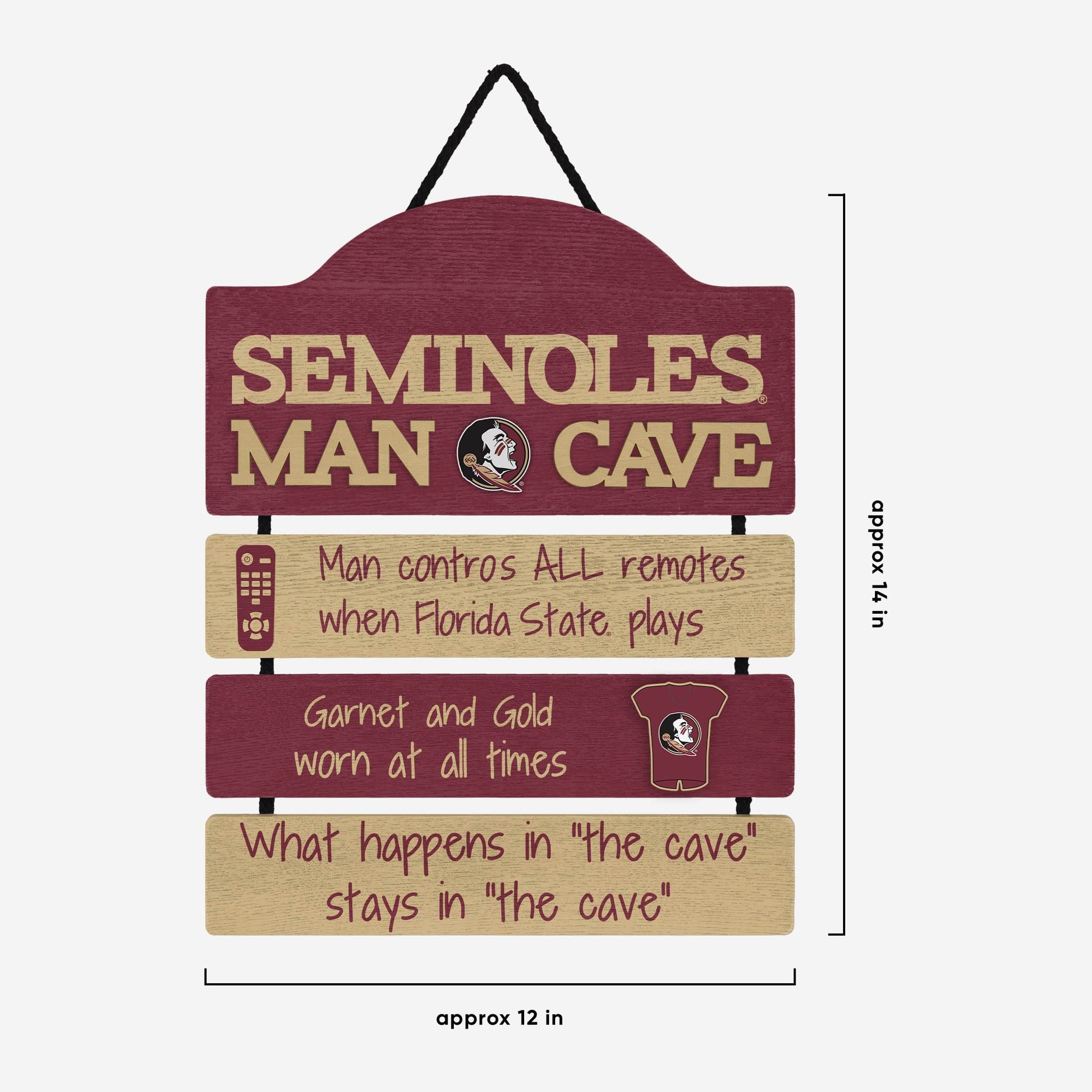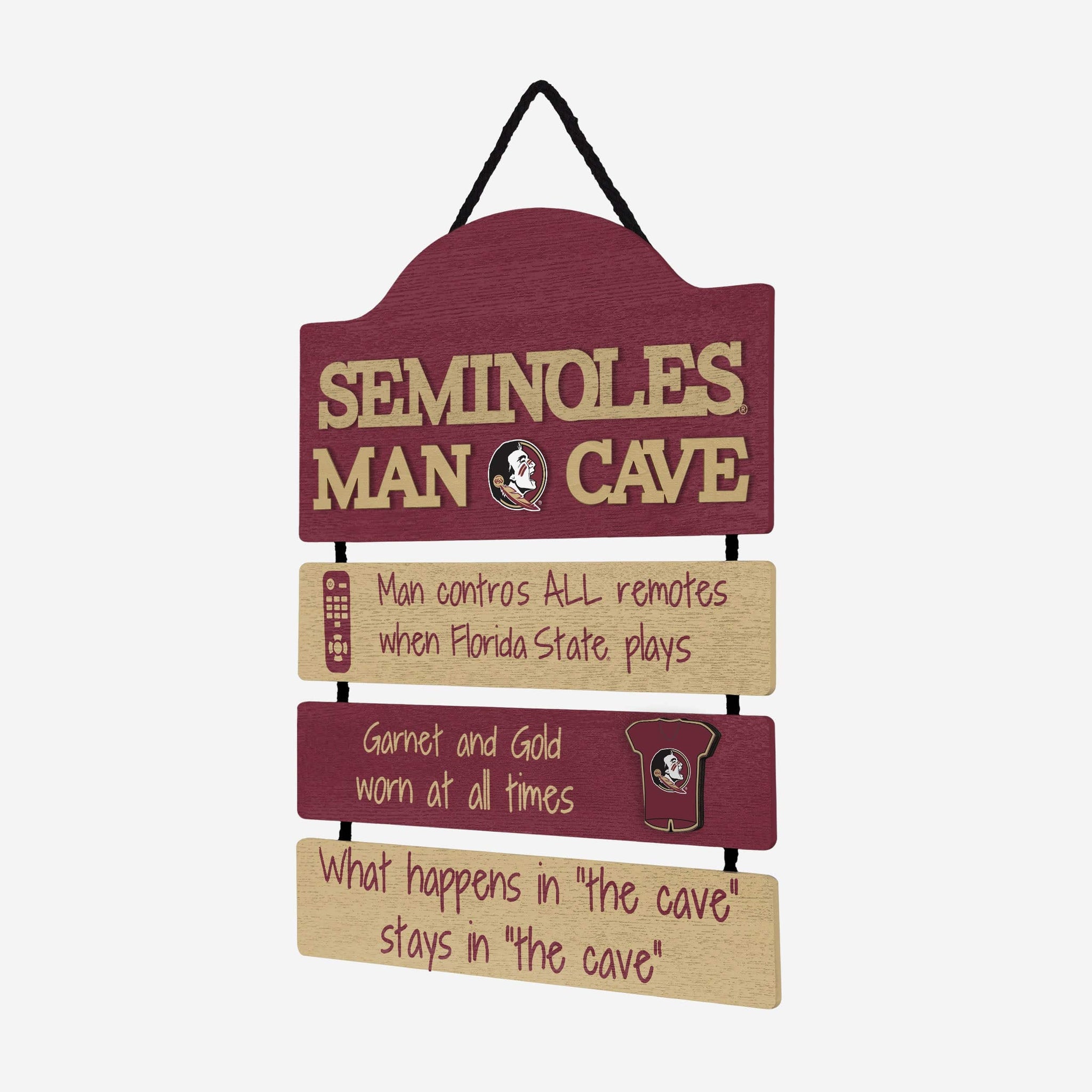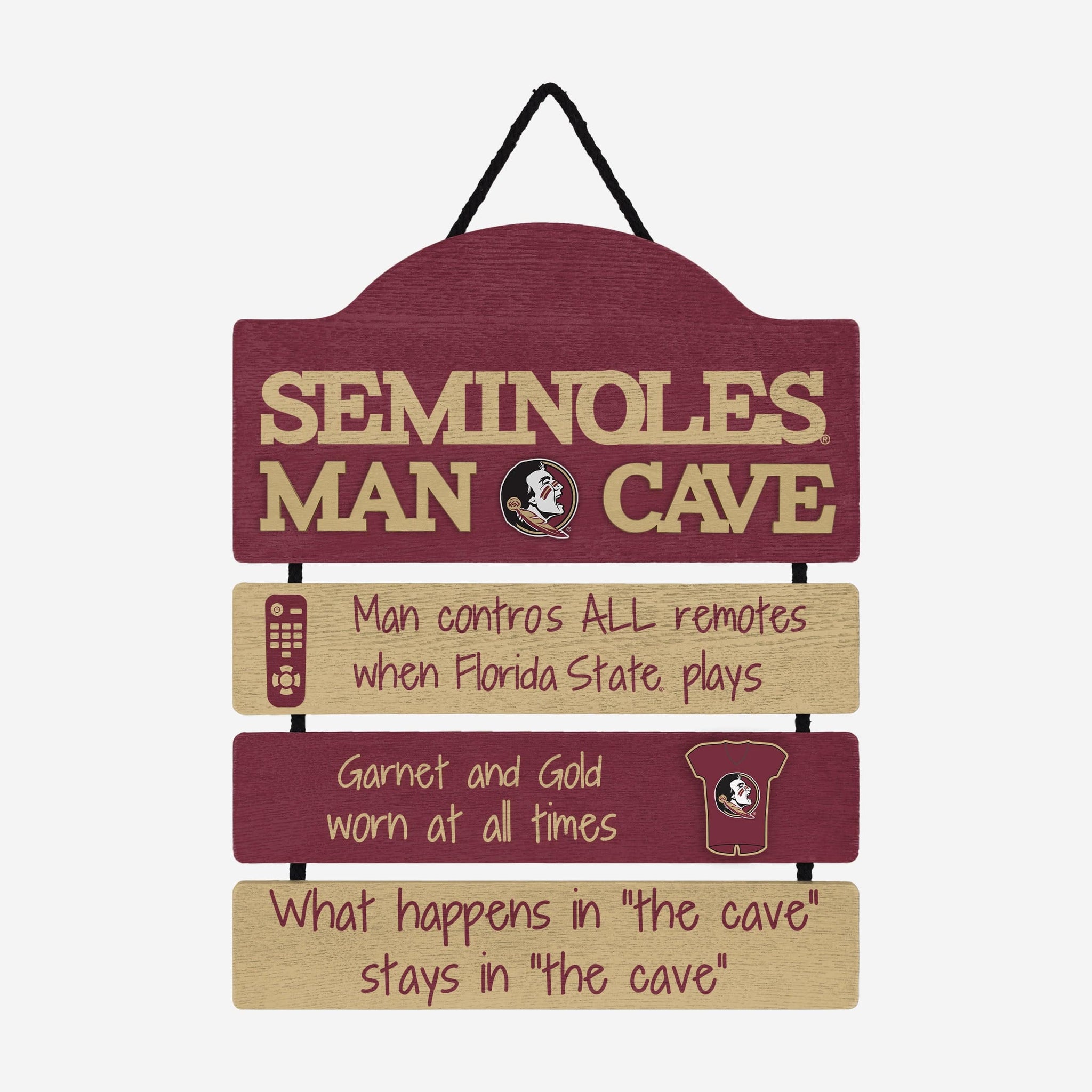 So, you're hosting the big watch party, and want to make sure you've decorated enough to impress your fellow fans. We've got you covered. This Florida State Seminoles Mancave Sign lets everyone know who the fan in charge is, and gives your home field plenty of advantage.