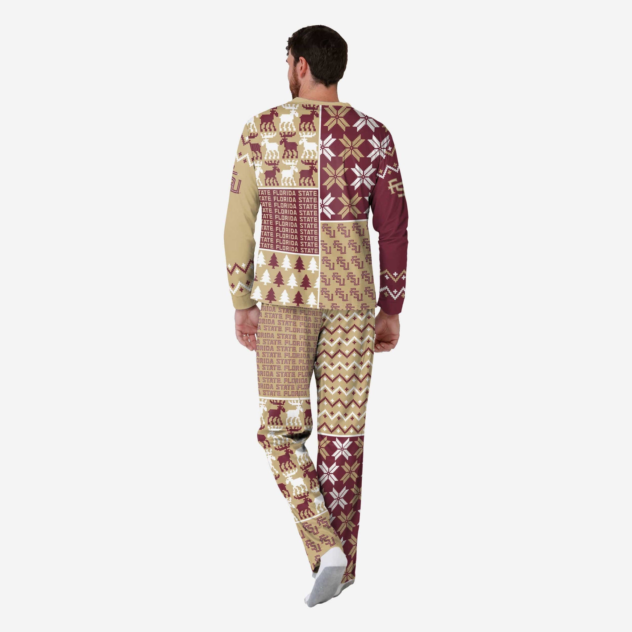 Get some matching family pajamas and dress to impress this holiday season! You won't want to miss these men's team pajamas! These men's PJ's are comfortable and show off your team spirit in the form of some sweet men's jammies. Introducing the Florida State Seminoles Men's Busy Block Family Holiday Pajamas! Don't forget to take your holiday photo with the whole family wearing matching Christmas pajamas!