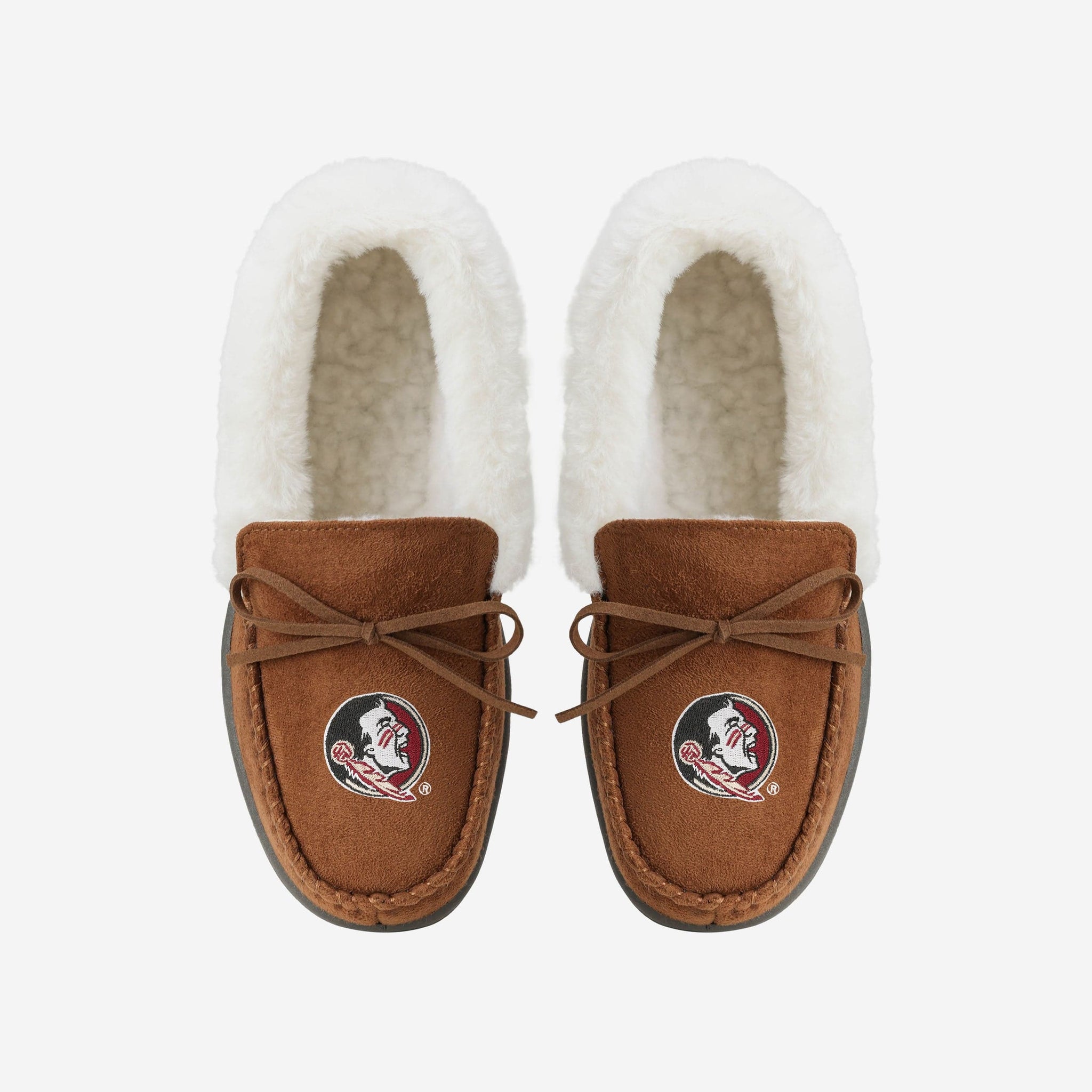 When you rocc these moccs, you can be an MVP on the couch watching TV! Introducing the Florida State Seminoles Women's Tan Moccasin Slippers!
