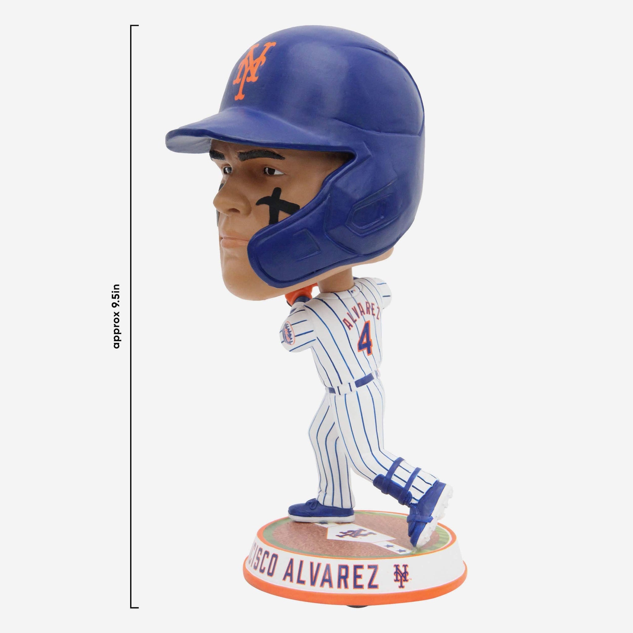 Celebrate one of The Big Apple's newest stars with an Amazin' Bighead. From behind the plate to front and center in your bobble collection, it's the Francisco Alvarez New York Mets Field Stripe Bighead Bobblehead.