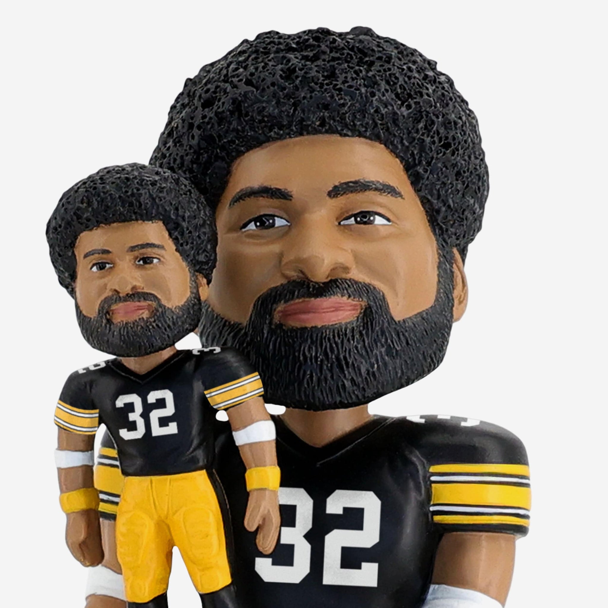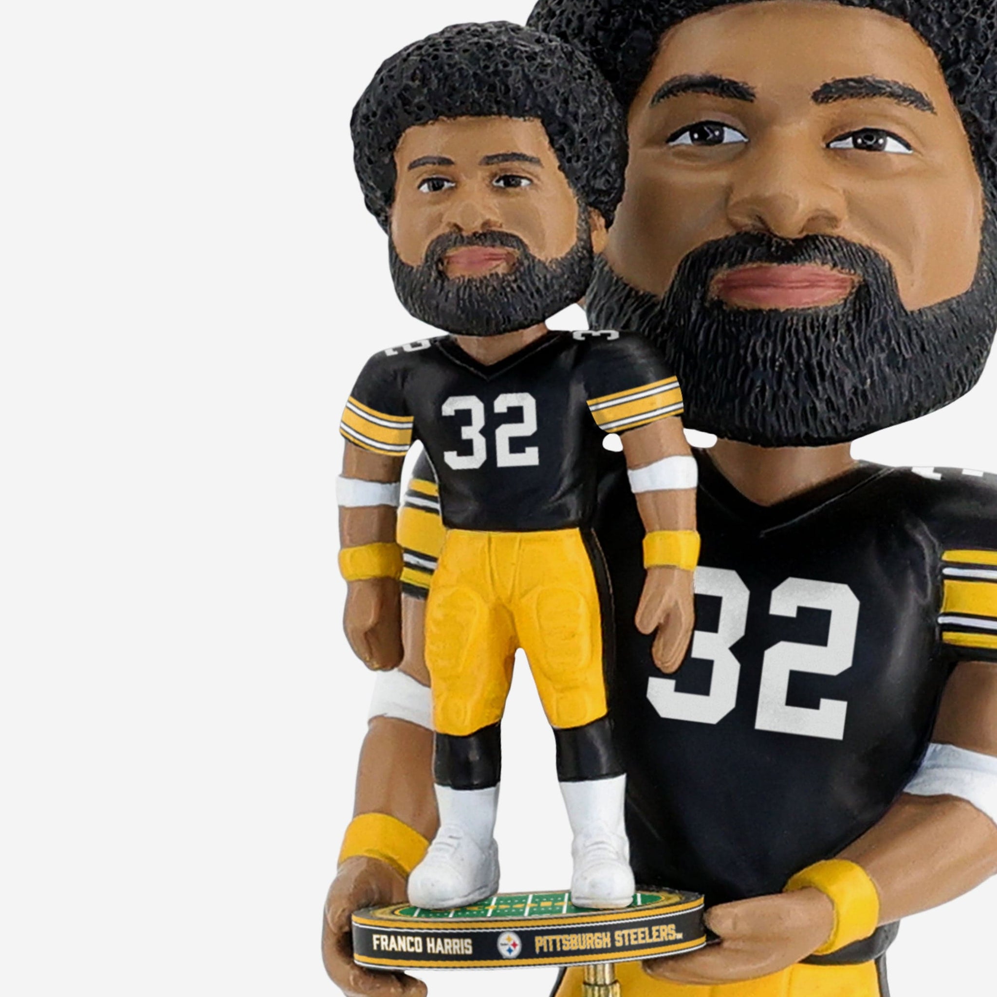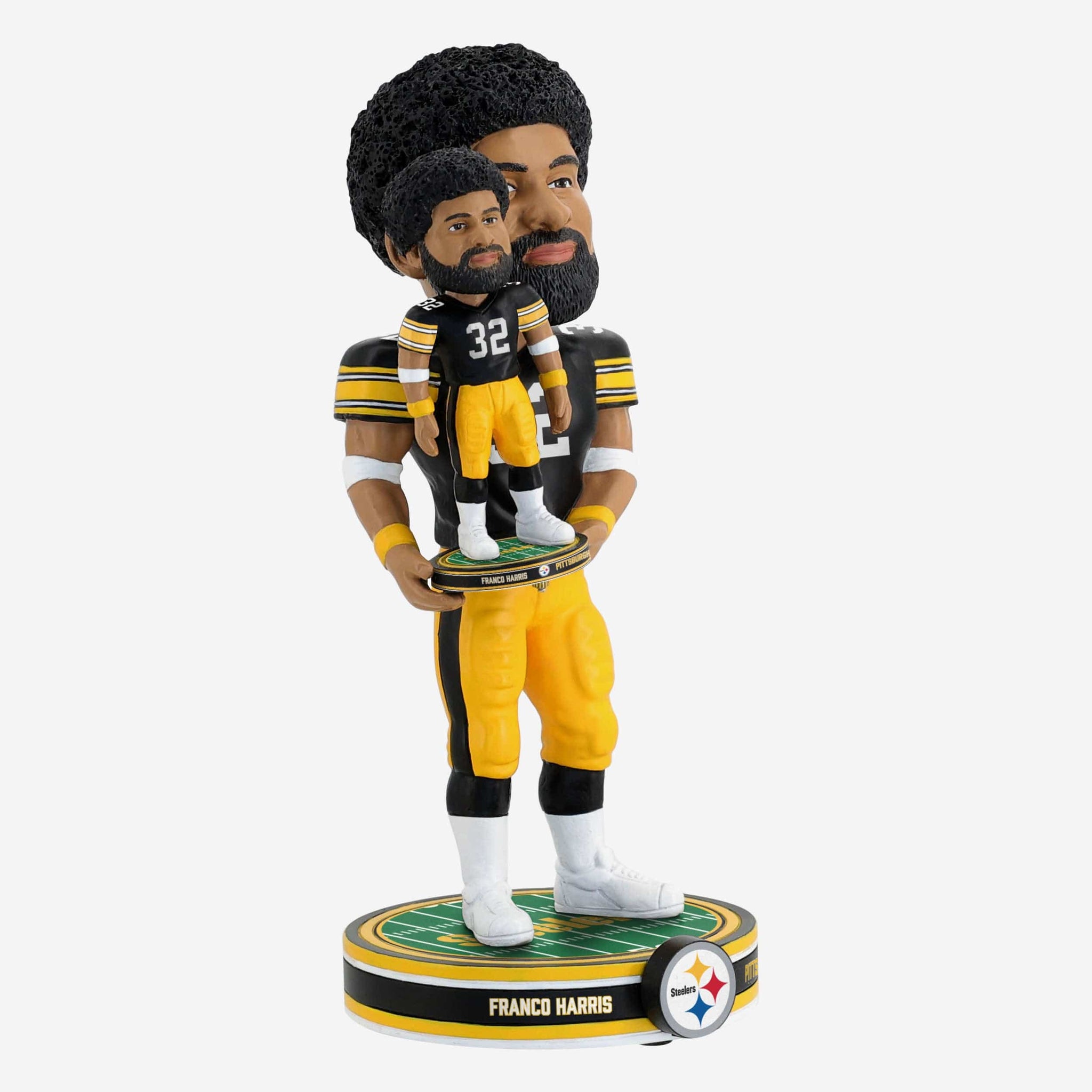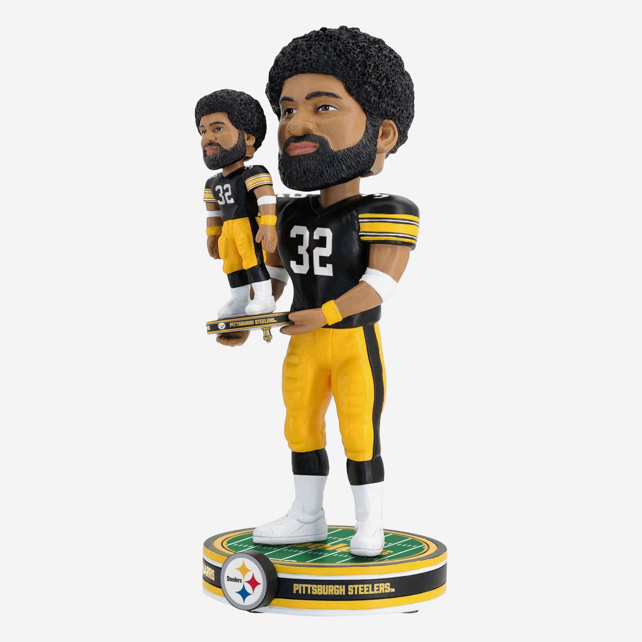 Itĺs a bobble, holding a bobble! Add a double dose of greatness to your collection with the Franco Harris Pittsburgh Steelers Bobble Dubblz Bobblehead.