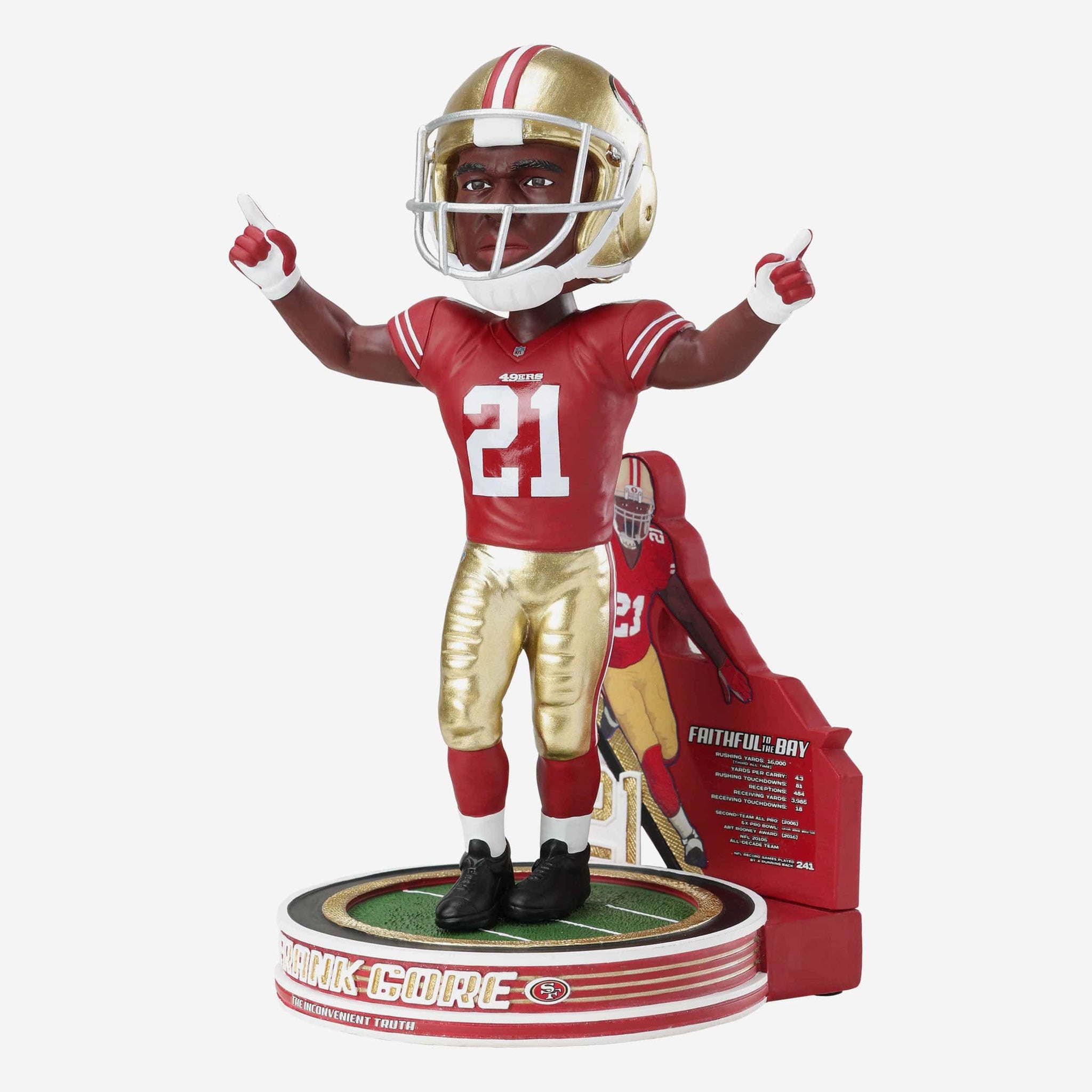 16,000 rushing yards. 81 touchdowns. 16 seasons. One epic bobblehead. Many called him the Inconvenient Truth, but thanks to this Frank Gore San Francisco 49ers Career Stats Ambassador Bobblehead, you can proudly call him part of your team.