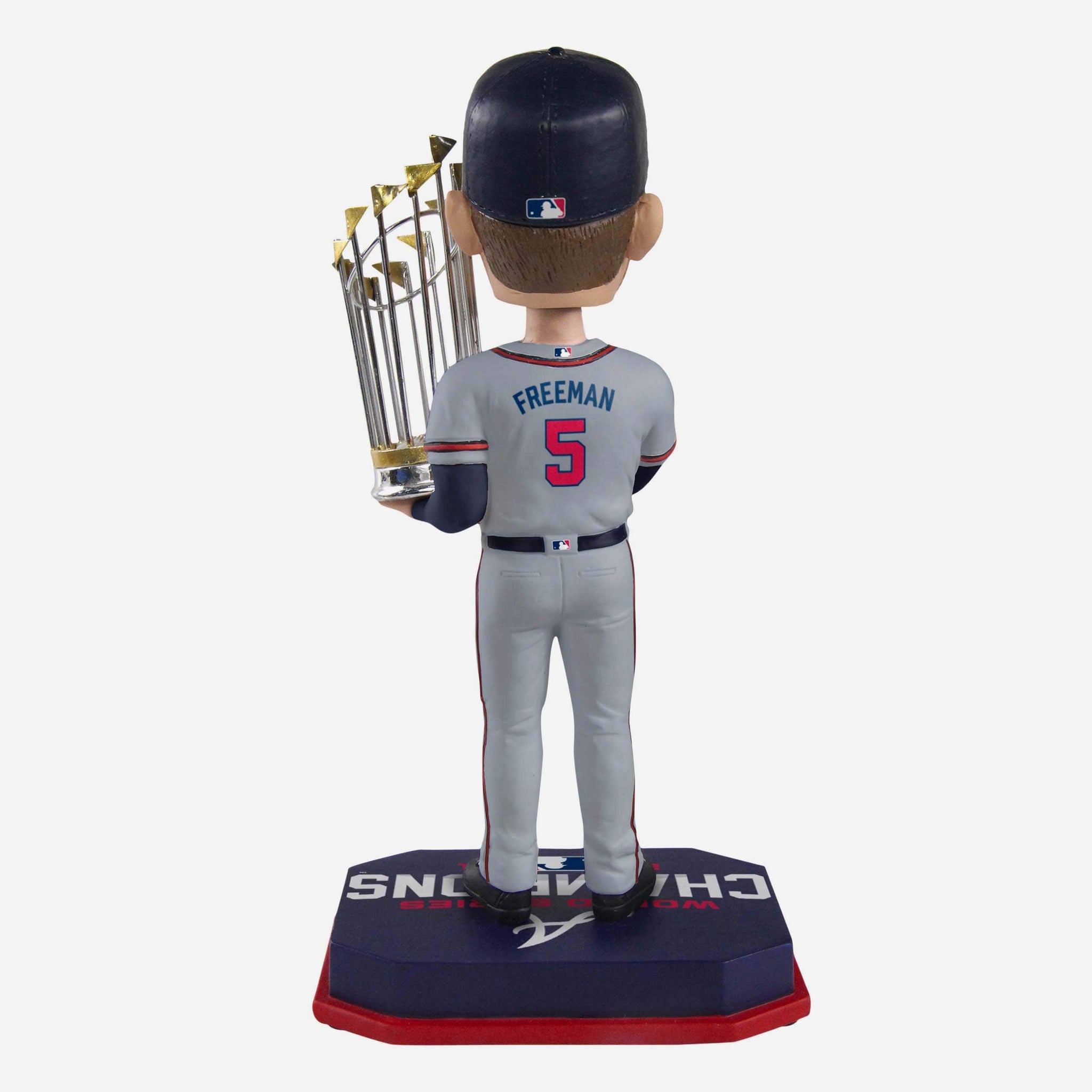 - Portrays Freeman wearing his road jersey gameday uniform and holding World Series championship trophy, because no champ celebration is complete without a little hardware