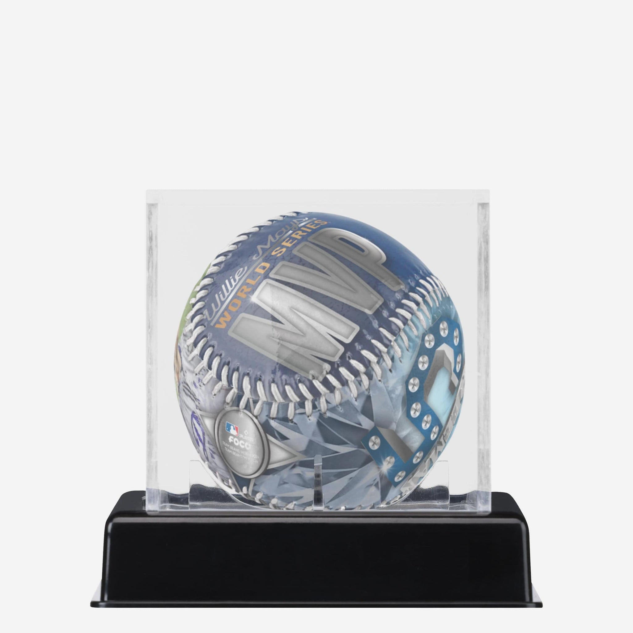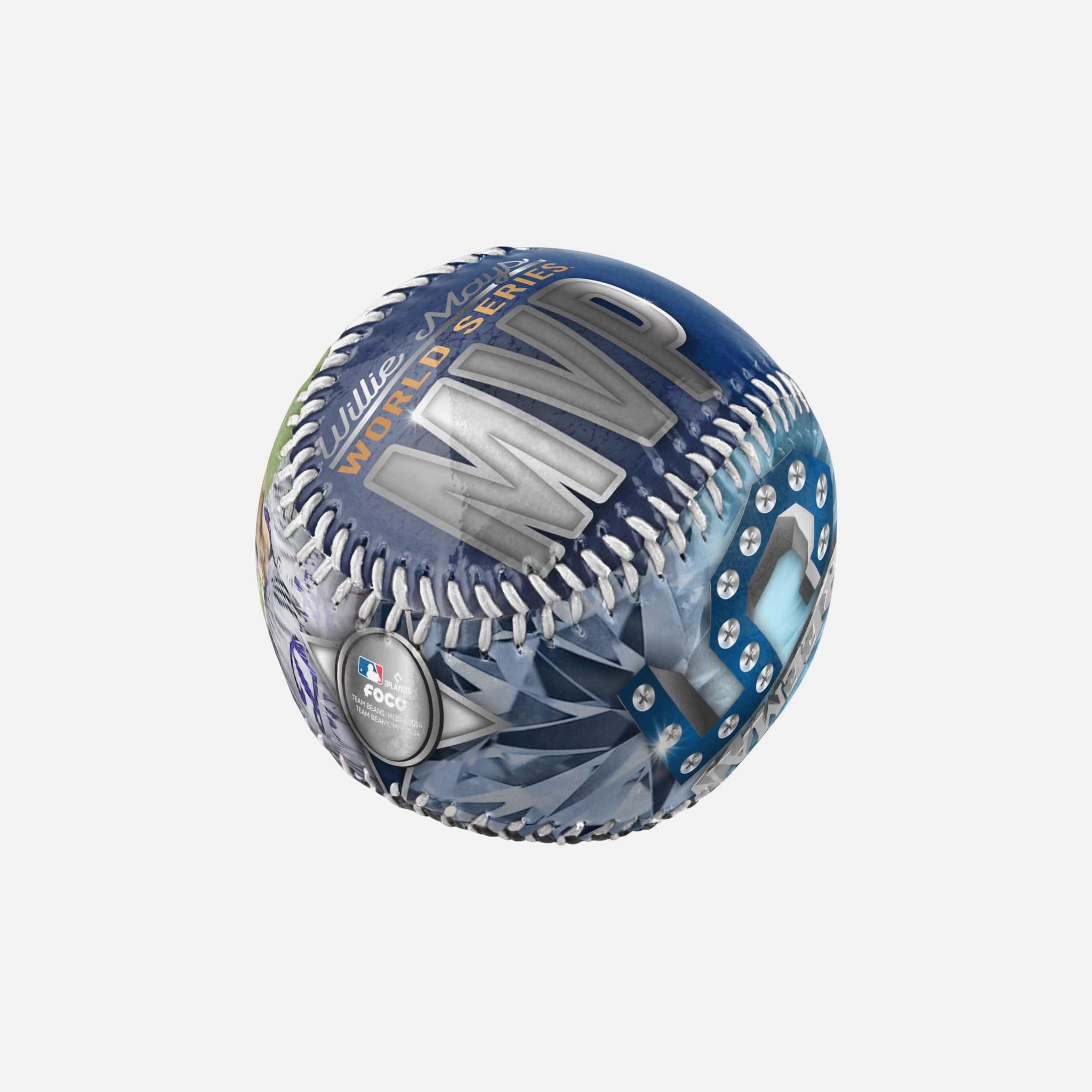 • “WORLD SERIES CHAMPIONS” and “MVP” text displays on baseball to let everyone know this guy raised his game on the big stage