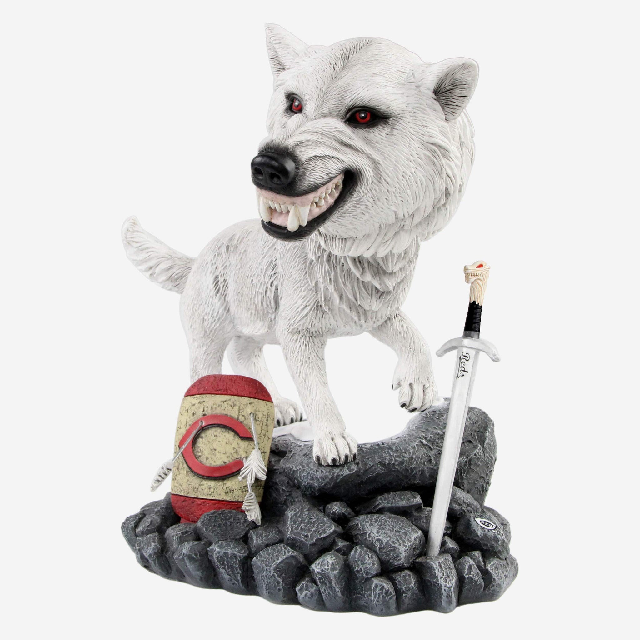 Looking for a teammate who can come through in the clutch for you? A slugging outfielder, a super utility infielder, or a lockdown closer all sound nice. But there's no teammate better than a Direwolf. Specifically, this Cincinnati Reds Game of Thrones Direwolf Bobblehead.