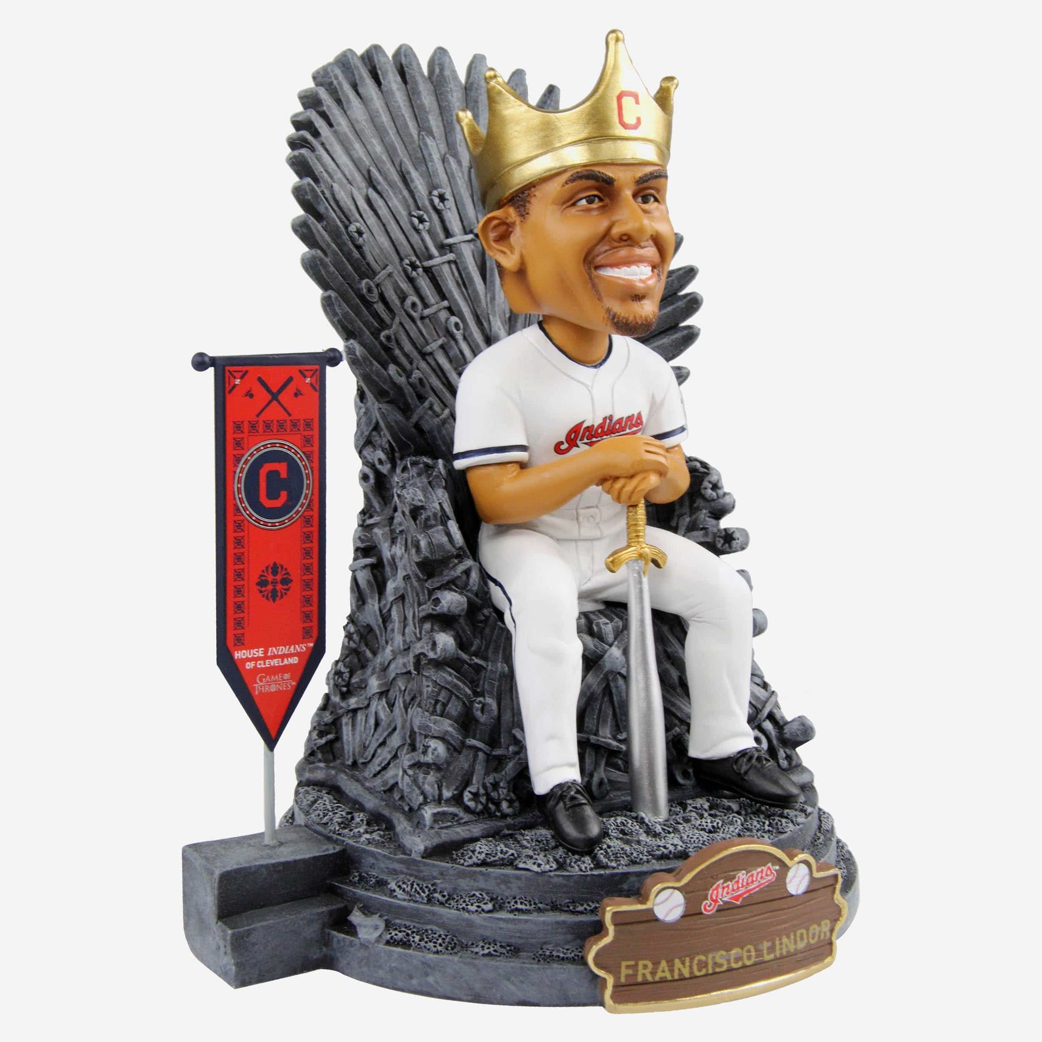 Everyone knows Francisco Lindor dominates a baseball game for all nine innings. But did you know he also rules the Seven Kingdoms? The proof is in this Francisco Lindor Cleveland Guardians Game of Thrones Iron Throne Bobblehead.