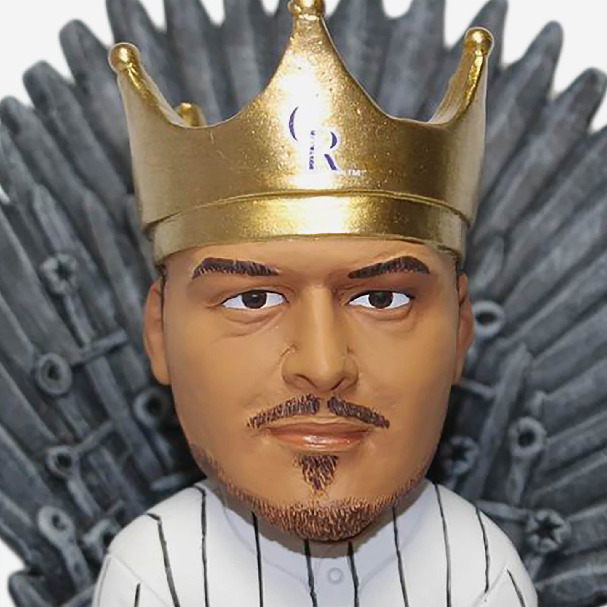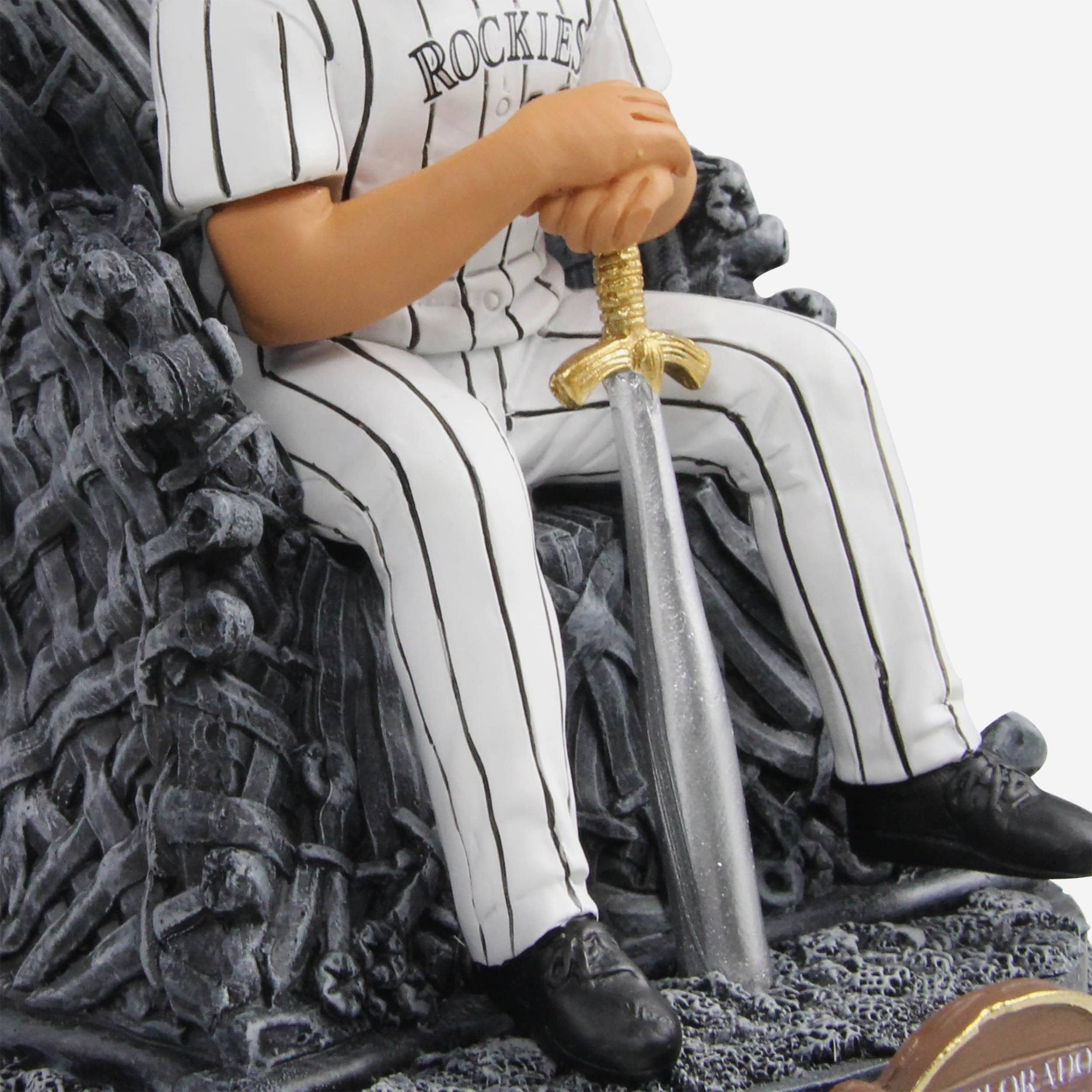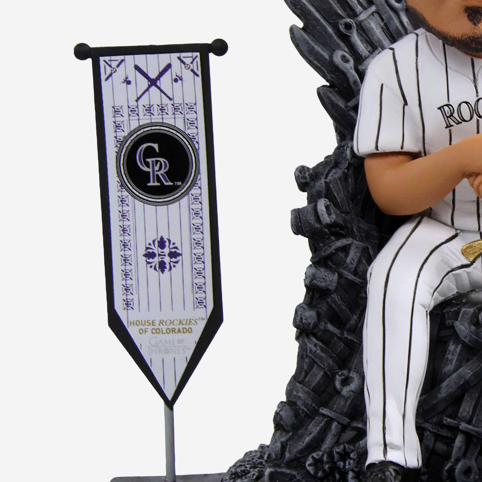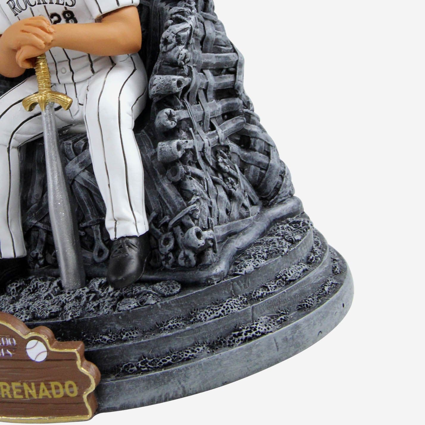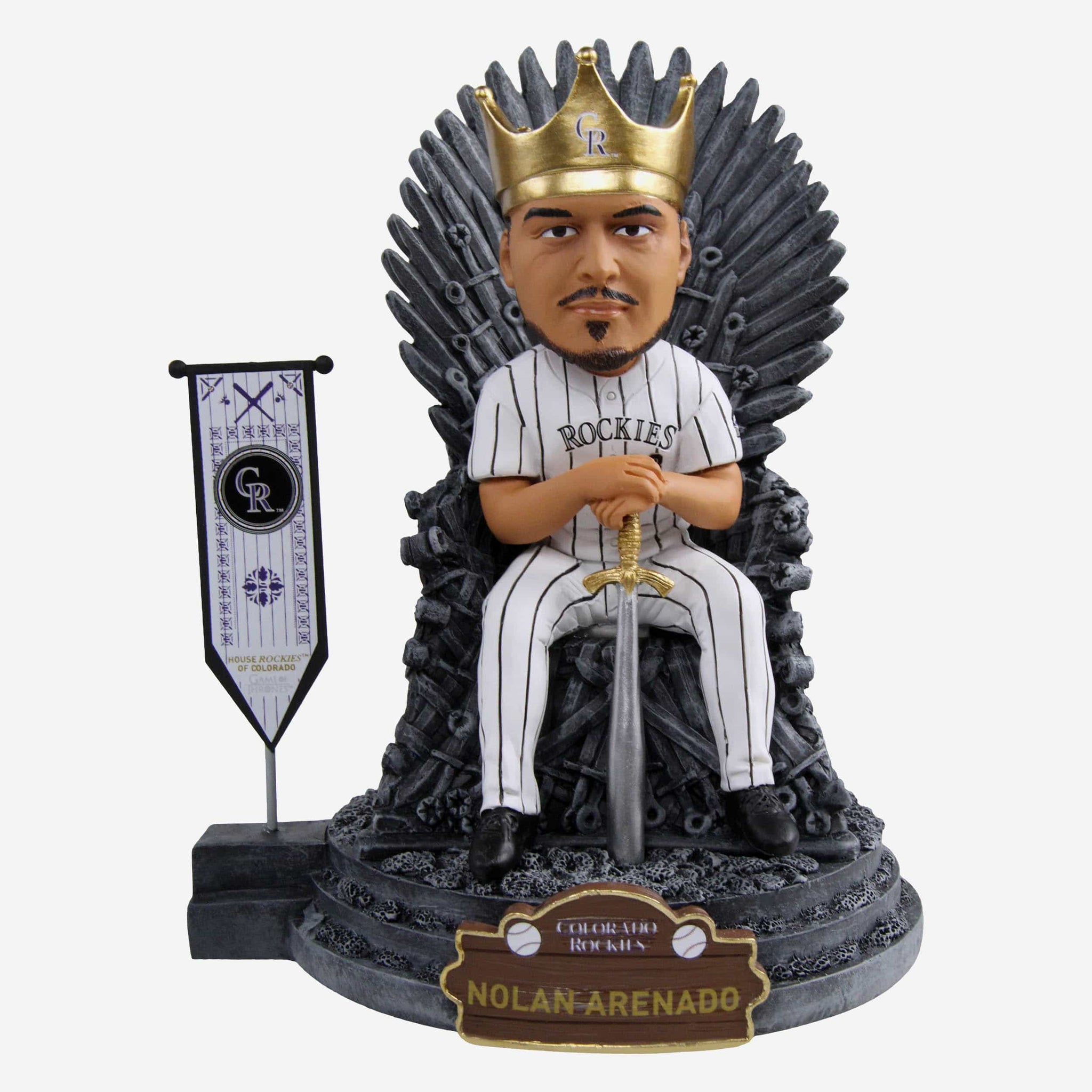 Everyone knows Nolan Arenado dominates a baseball game for all nine innings. But did you know he also rules the Seven Kingdoms? The proof is in this Colorado Rockies Nolan Arenado Game of Thrones Iron Throne Bobblehead.