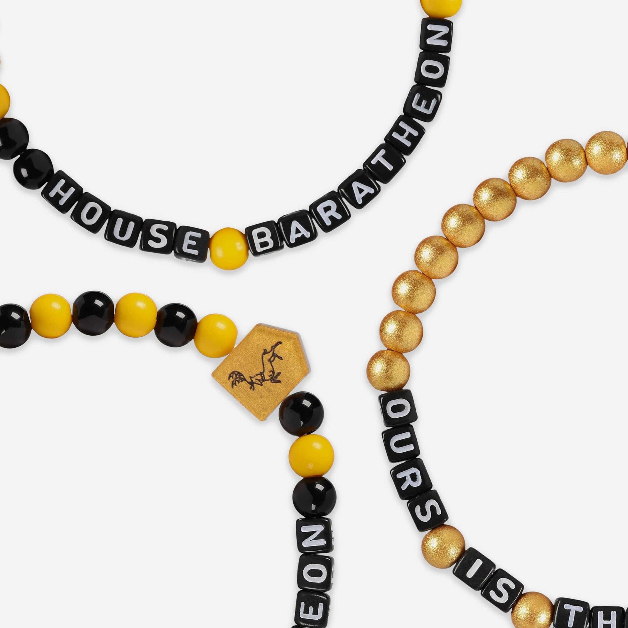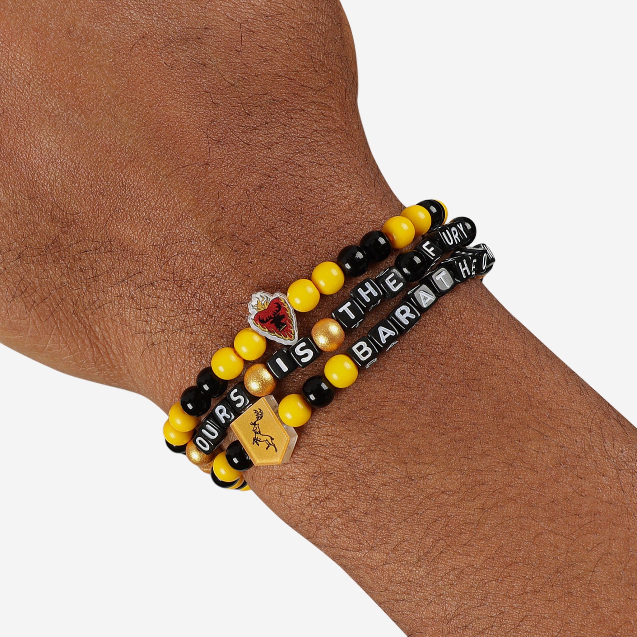 Step up your fan fashion sense with this House Baratheon Game of Thrones™ 3 Pack Beaded Friendship Bracelet. These matching friendship bracelets have an all-over design and thematic displays, which makes them the perfect way to show your support for Game of Thrones and show off your unique sense of style.