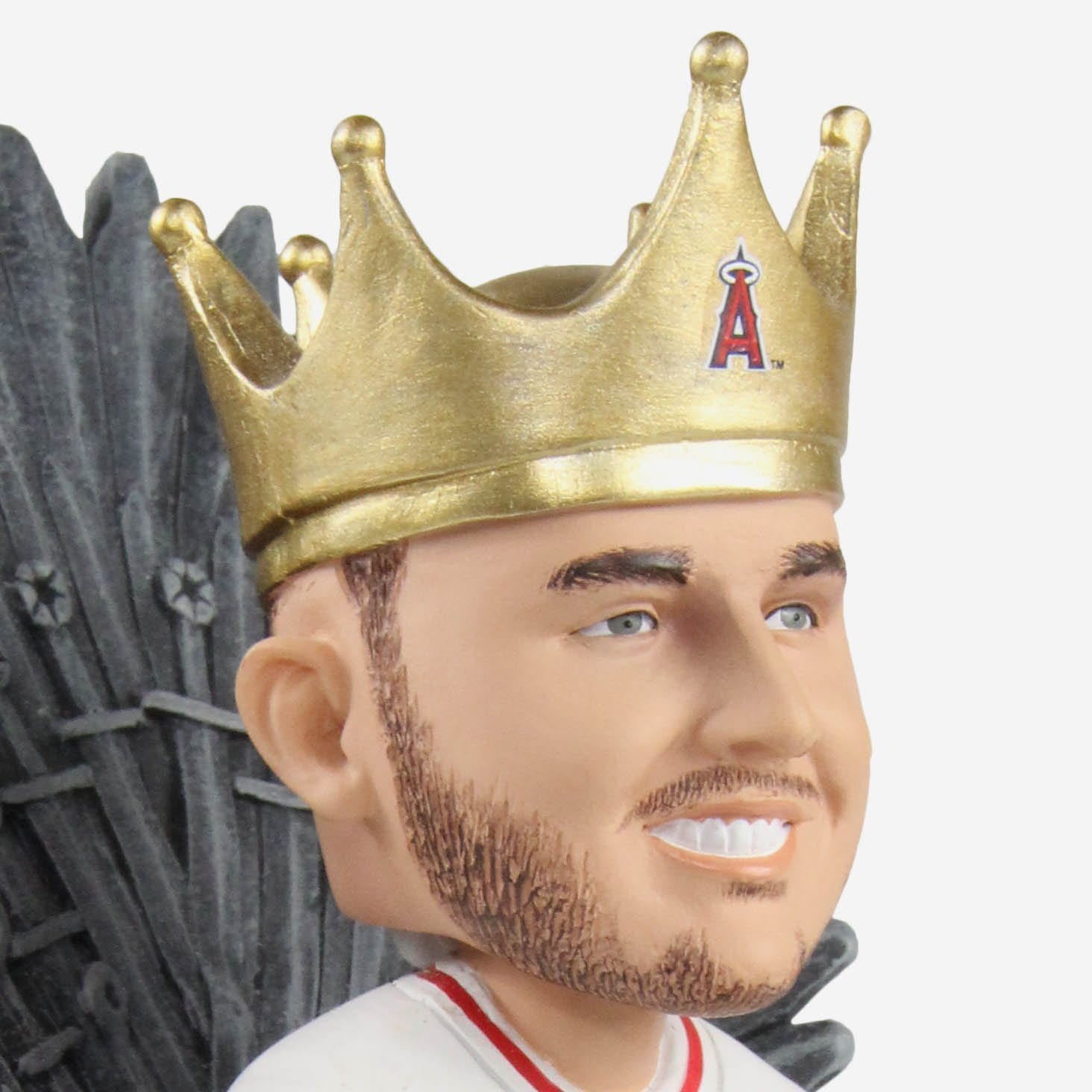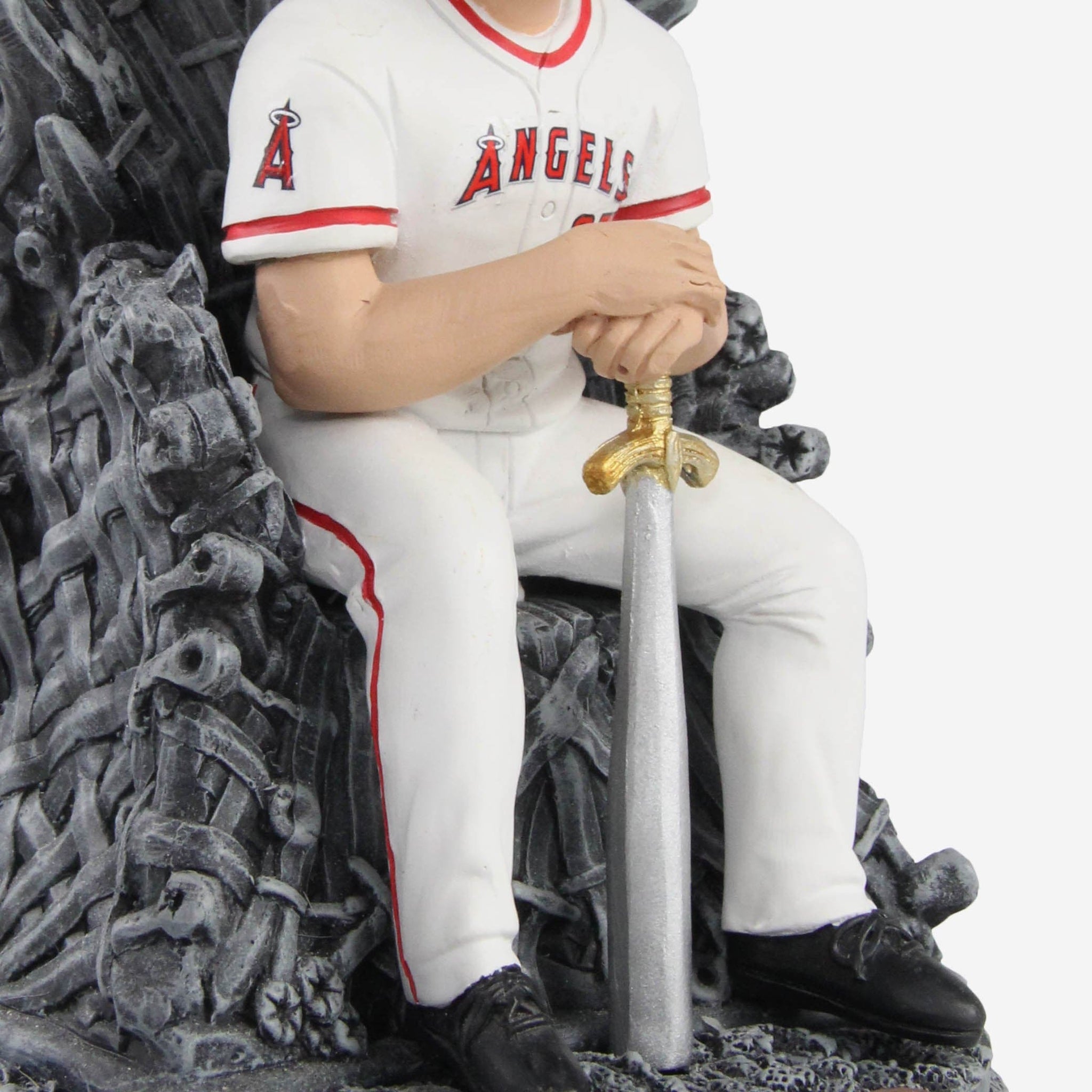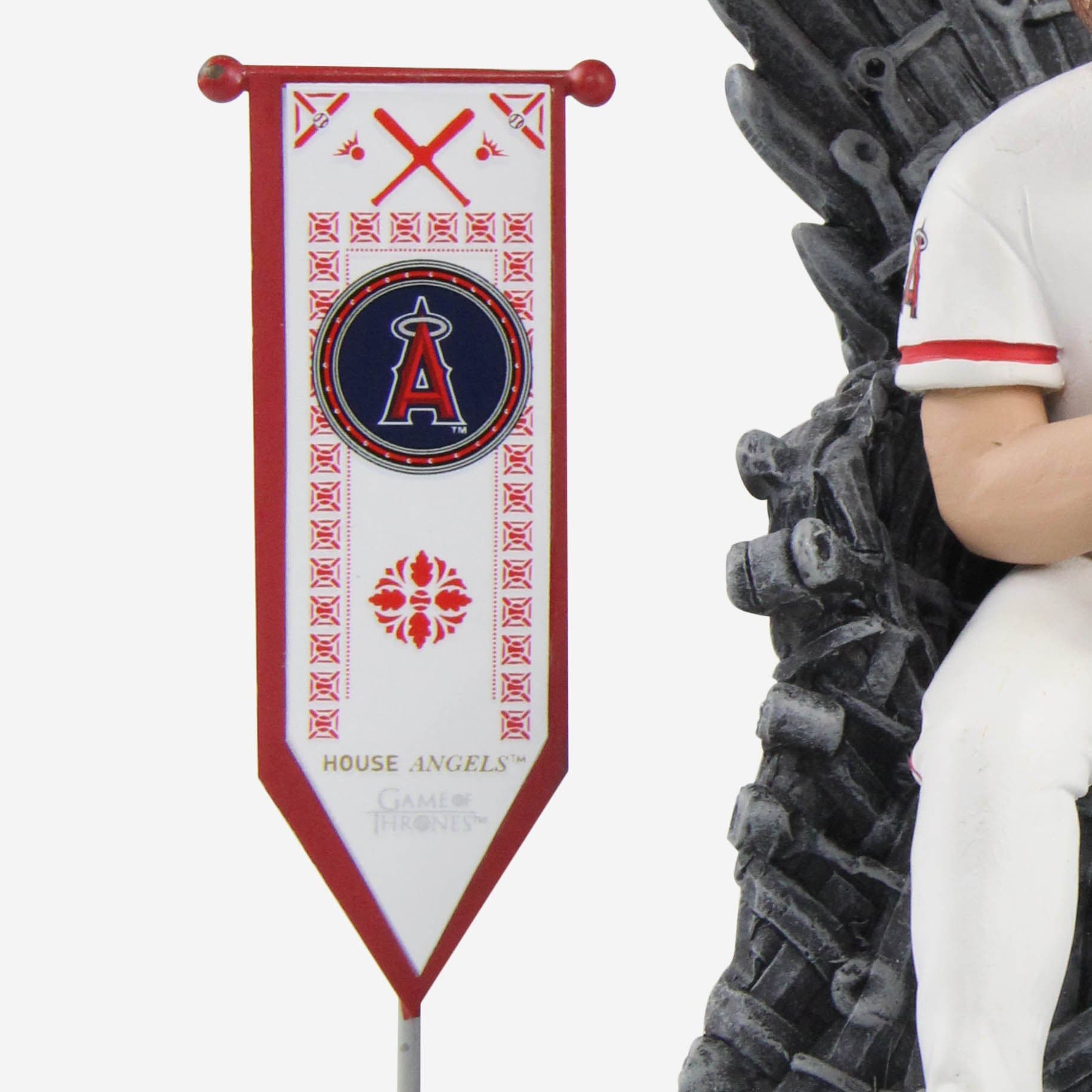 Everyone knows Mike Trout dominates a baseball game for all nine innings. But did you know he also rules the Seven Kingdoms? The proof is in this Los Angeles Angels Mike Trout Game of Thrones Iron Throne Bobblehead.