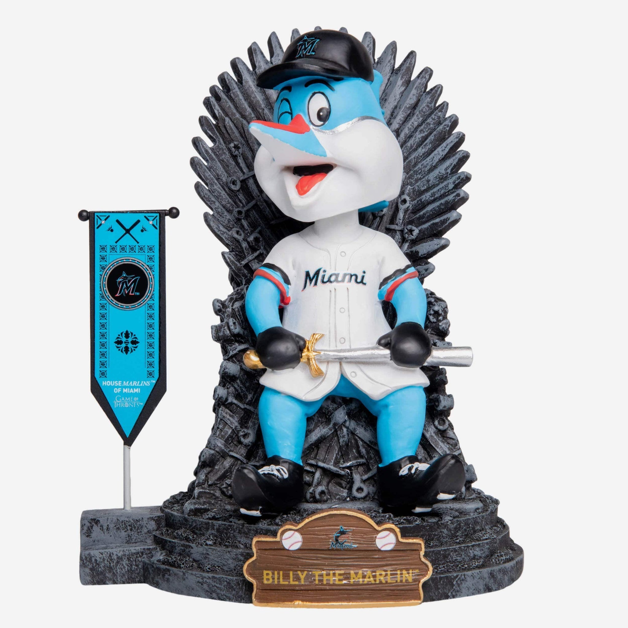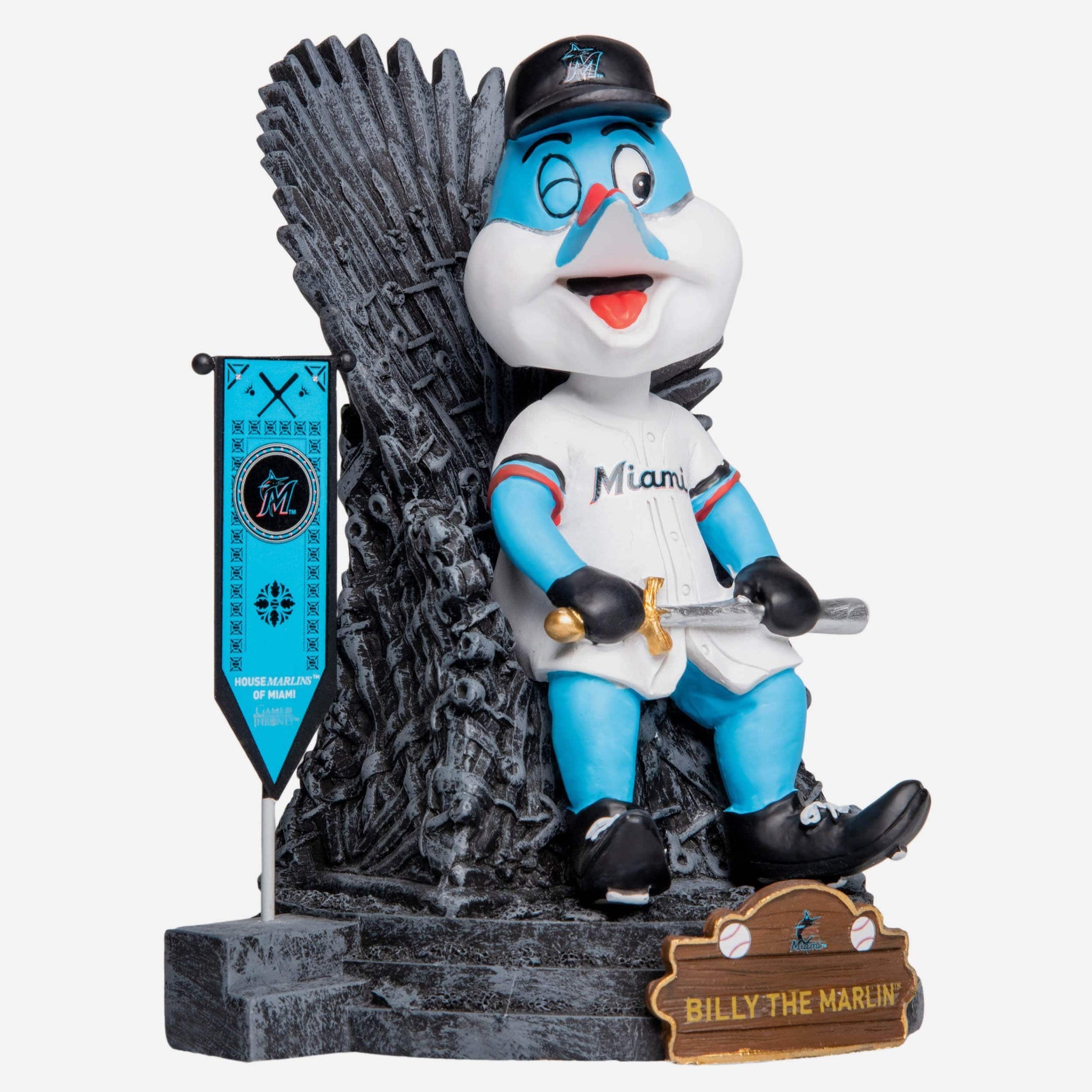 You know you're a legendary fan. We know you're a legendary fan. But does everyone else know? If not, they will when you show them this Billy Miami Marlins Game of Thrones Mascot Bobblehead. Everyone will be bending the knee for your fandom.