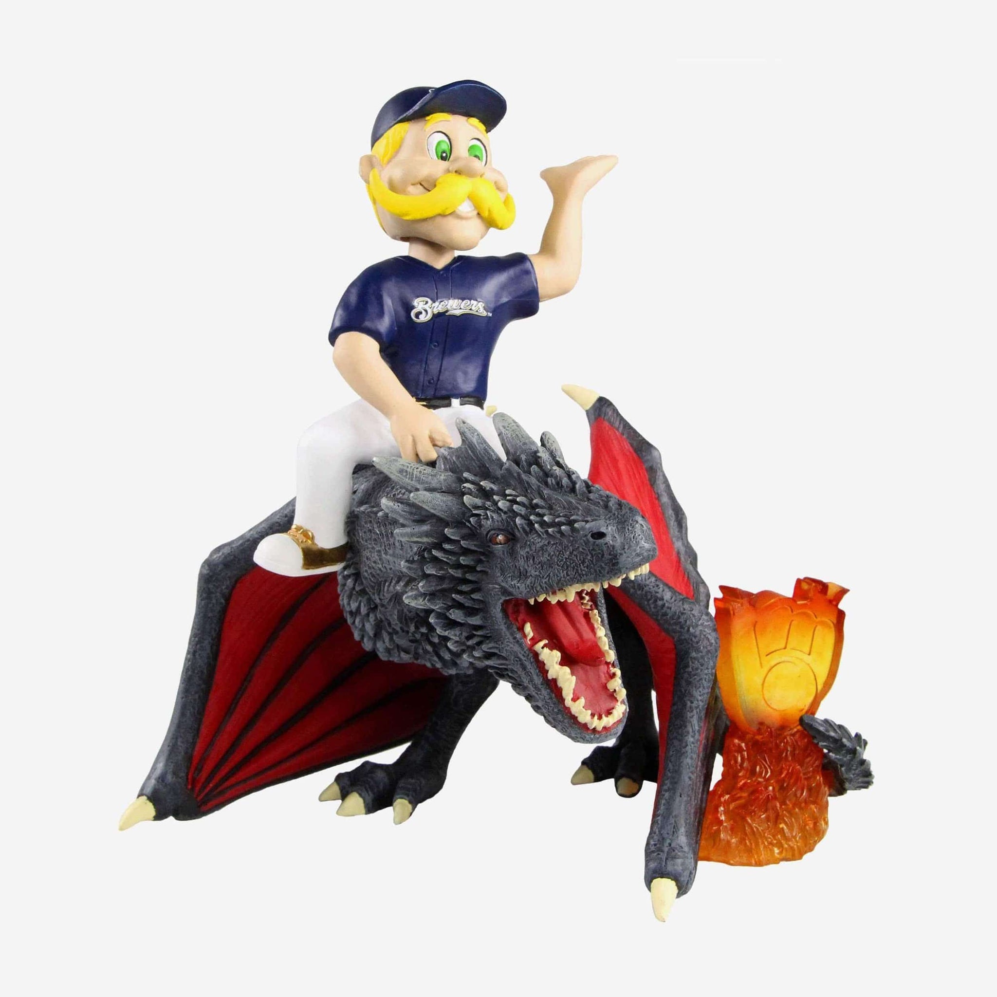 Do you ever find yourself in a moment of panic, shouting something along the lines of "WHERE ARE MY DRAGONS!?" Panic no more. Because your dragon is right here, along with your favorite mascot. Meet the Milwaukee Brewers Bernie Brewer Game of Thrones Mascot on Fire Dragon Bobblehead.