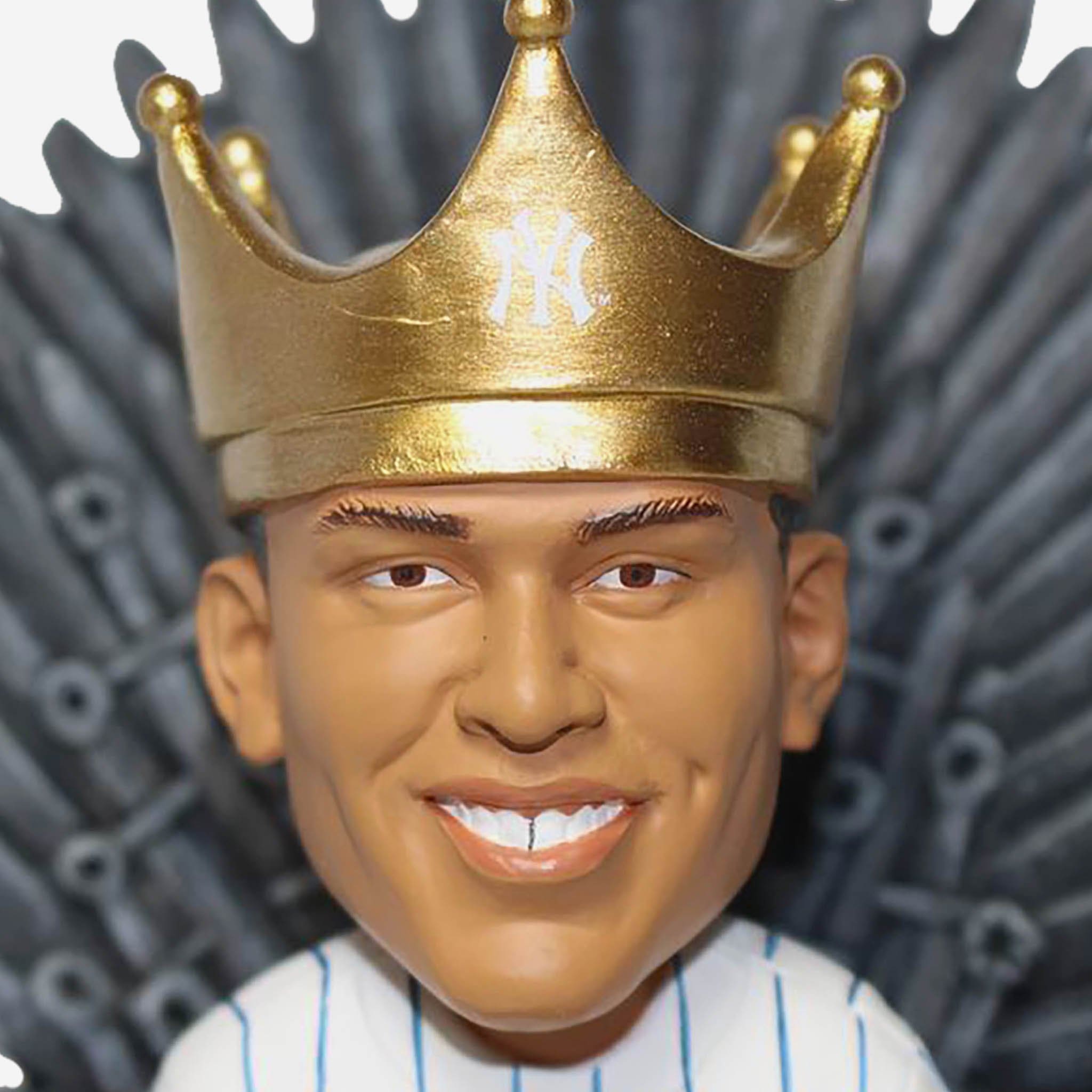 Everyone knows Aaron Judge dominates a baseball game for all nine innings. But did you know he also rules the Seven Kingdoms? The proof is in this Aaron Judge New York Yankees Game of Thrones Iron Throne Bobblehead.