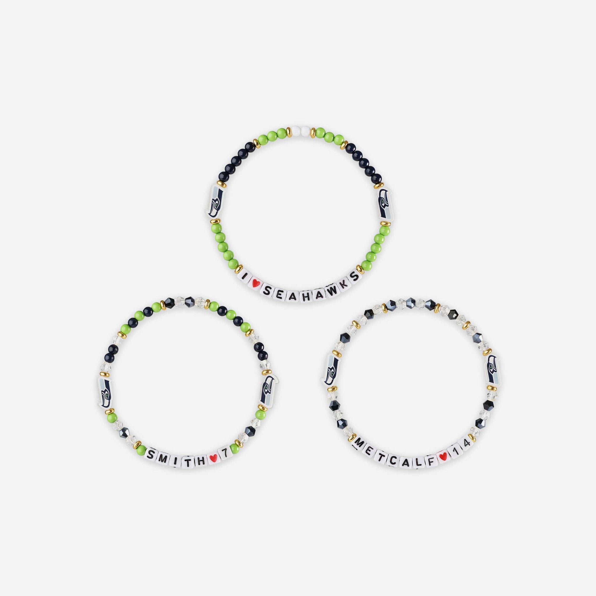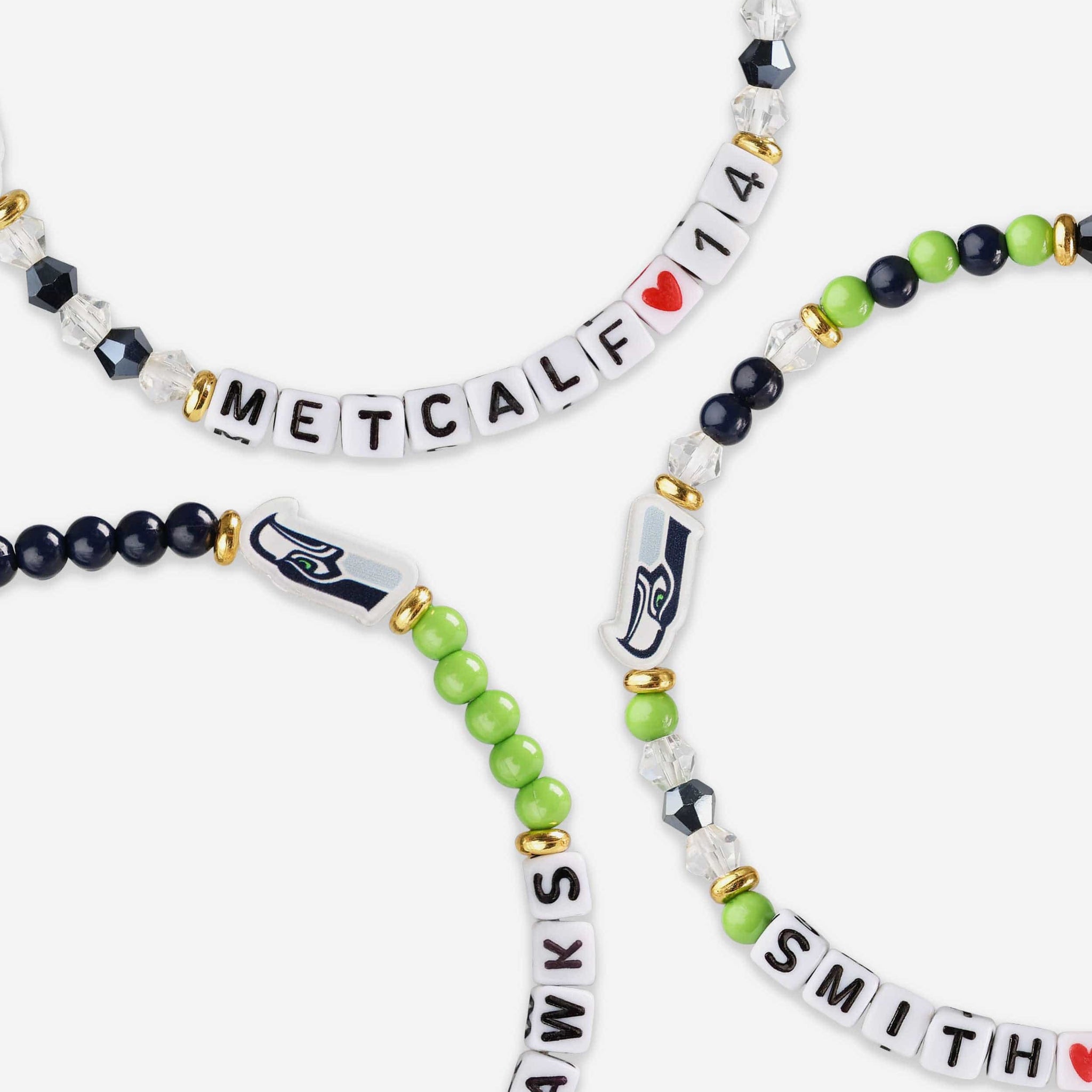 - Thematic words displayed: Letter cubes are organized on a friendship bracelet string to display team-specific words, messages, and player names that will make sure these Geno Smith & DK Metcalf player friendship bracelets always have your team spirit front and center.