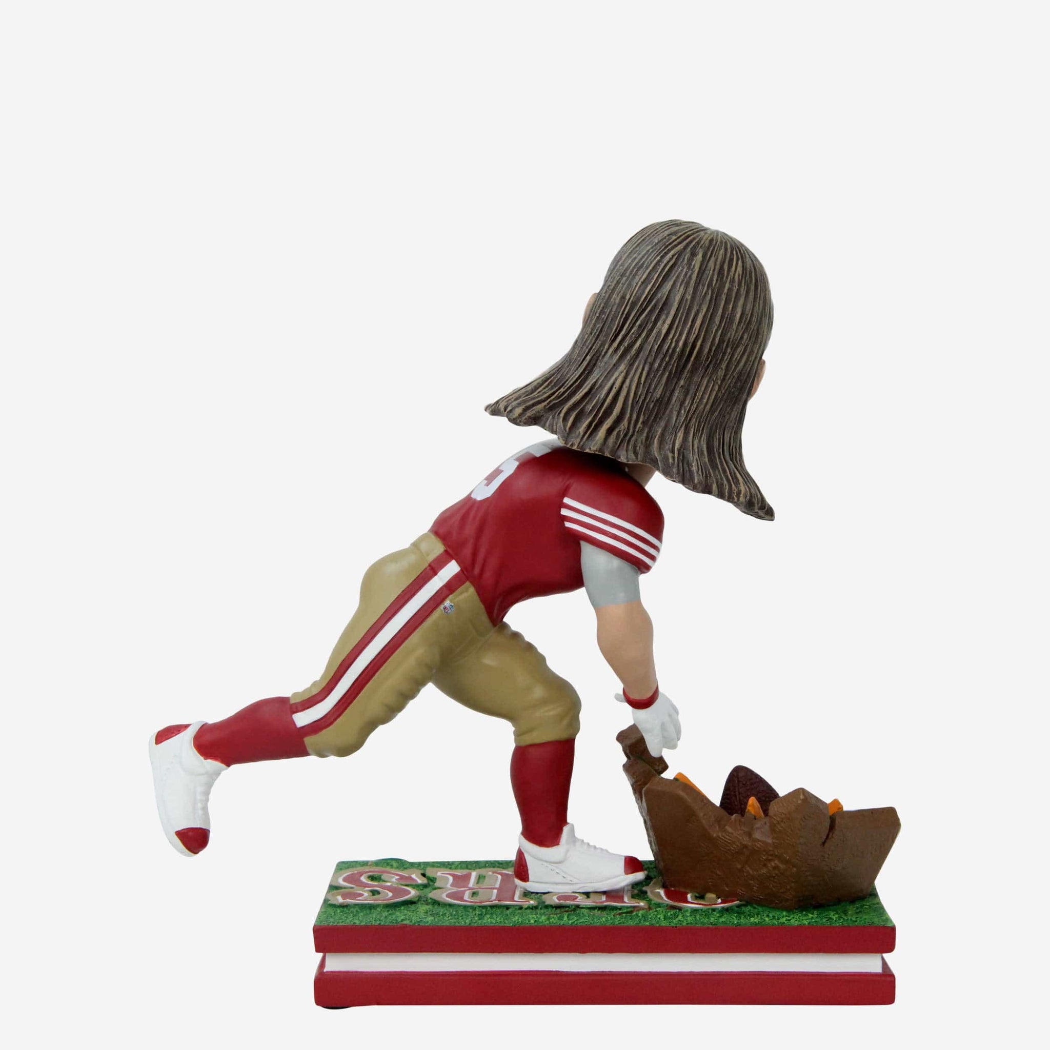 - Portrays Kittle wearing his red gameday uniform and spiking a football, fired up after another big play