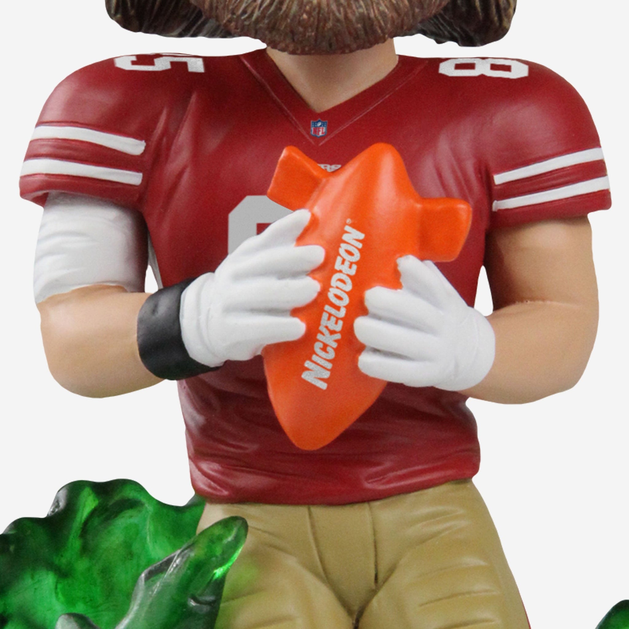 • Portrays Kittle wearing his gameday uniform in an action pose, holding a Nickelodeon football, ready to get the crowd on its feet