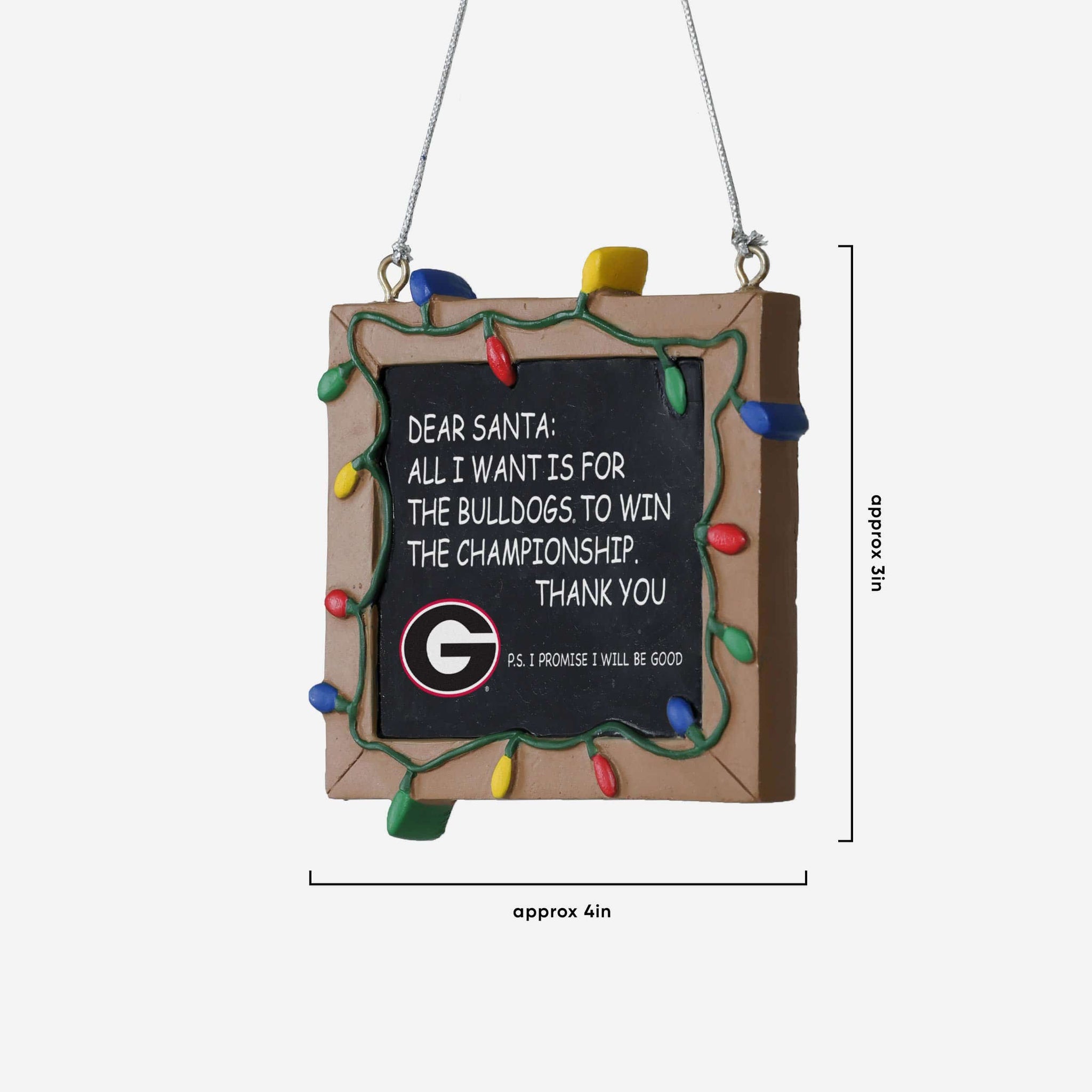 So, you made your list and sent it to jolly ol' Fanta Claus, asking him for a championship. But sometimes letters can get lost in the mail. Just in case, put this Georgia Bulldogs Chalkboard Sign Ornament on your tree to let him know how good you've been this year, and that all you want for the holidays is a trophy.