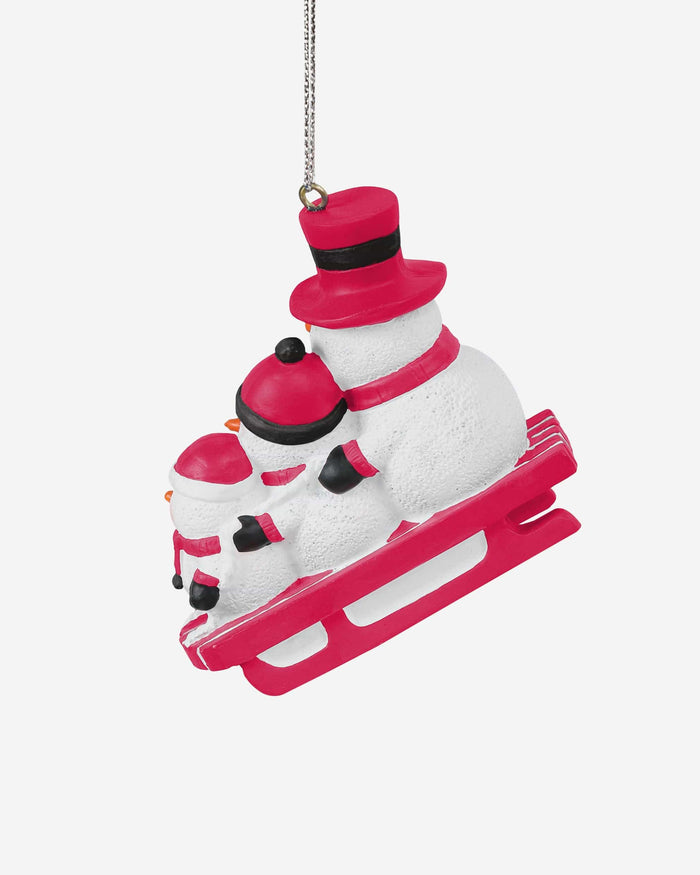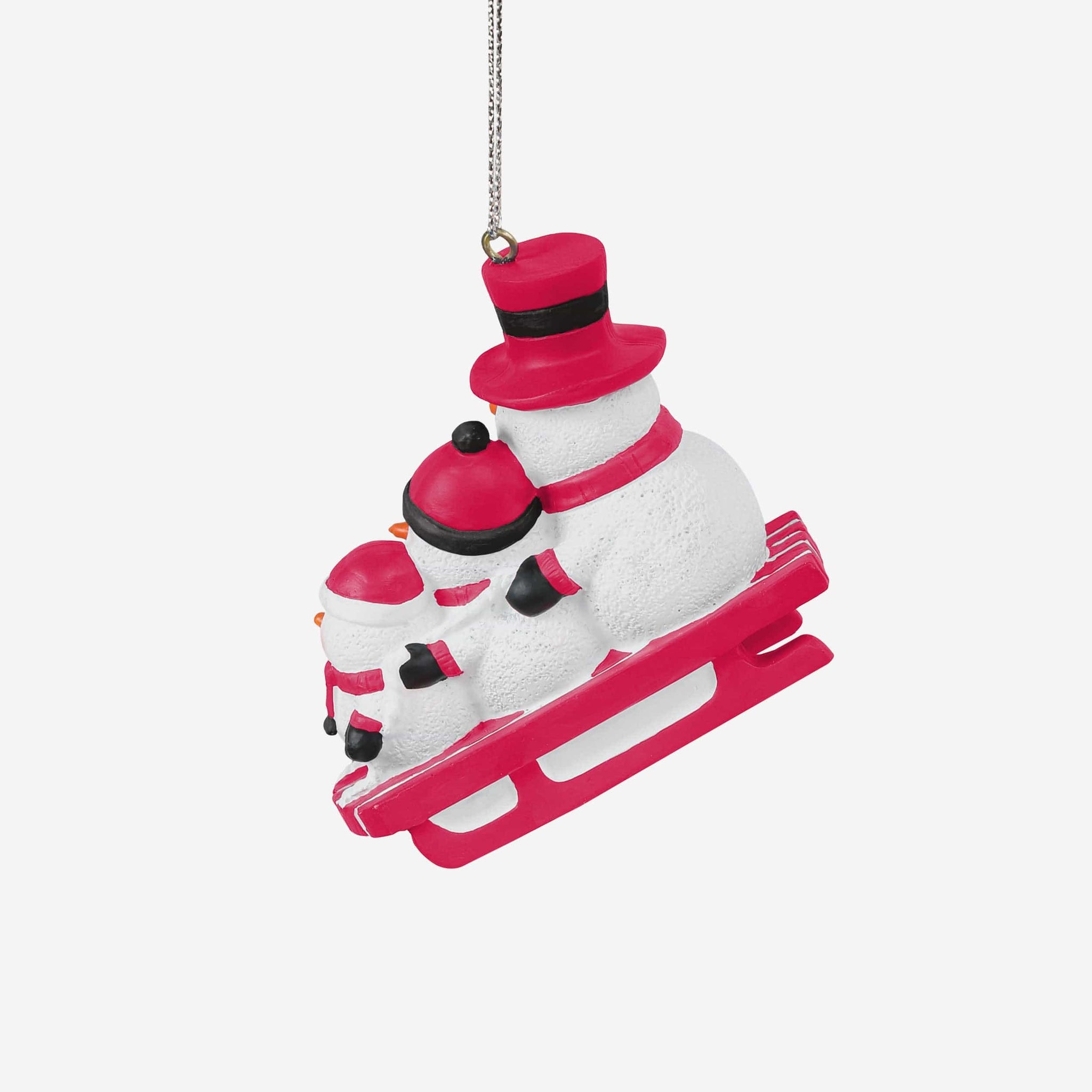 - Portrays three snowmen riding team-colored sled, repping the team in style