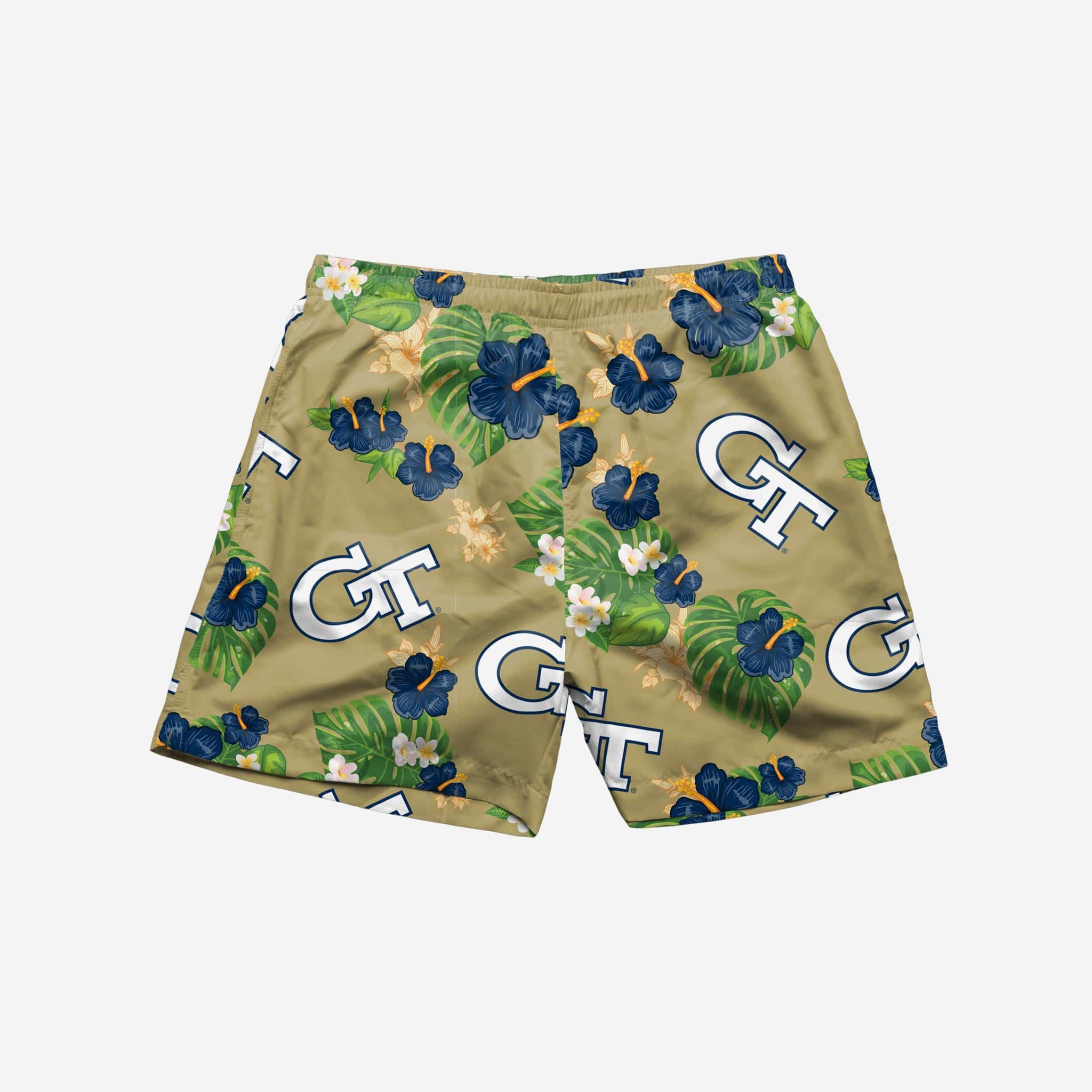 Georgia Tech Yellow Jackets Floral Swimming Trunks FOCO - FOCO.com