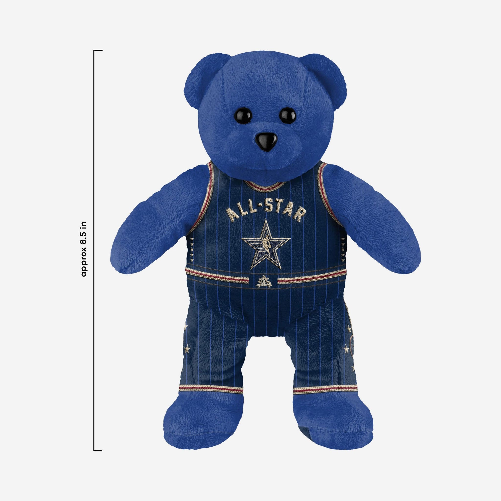 - Plush bear portrayed wearing your favorite player’s blue All-Star uniform