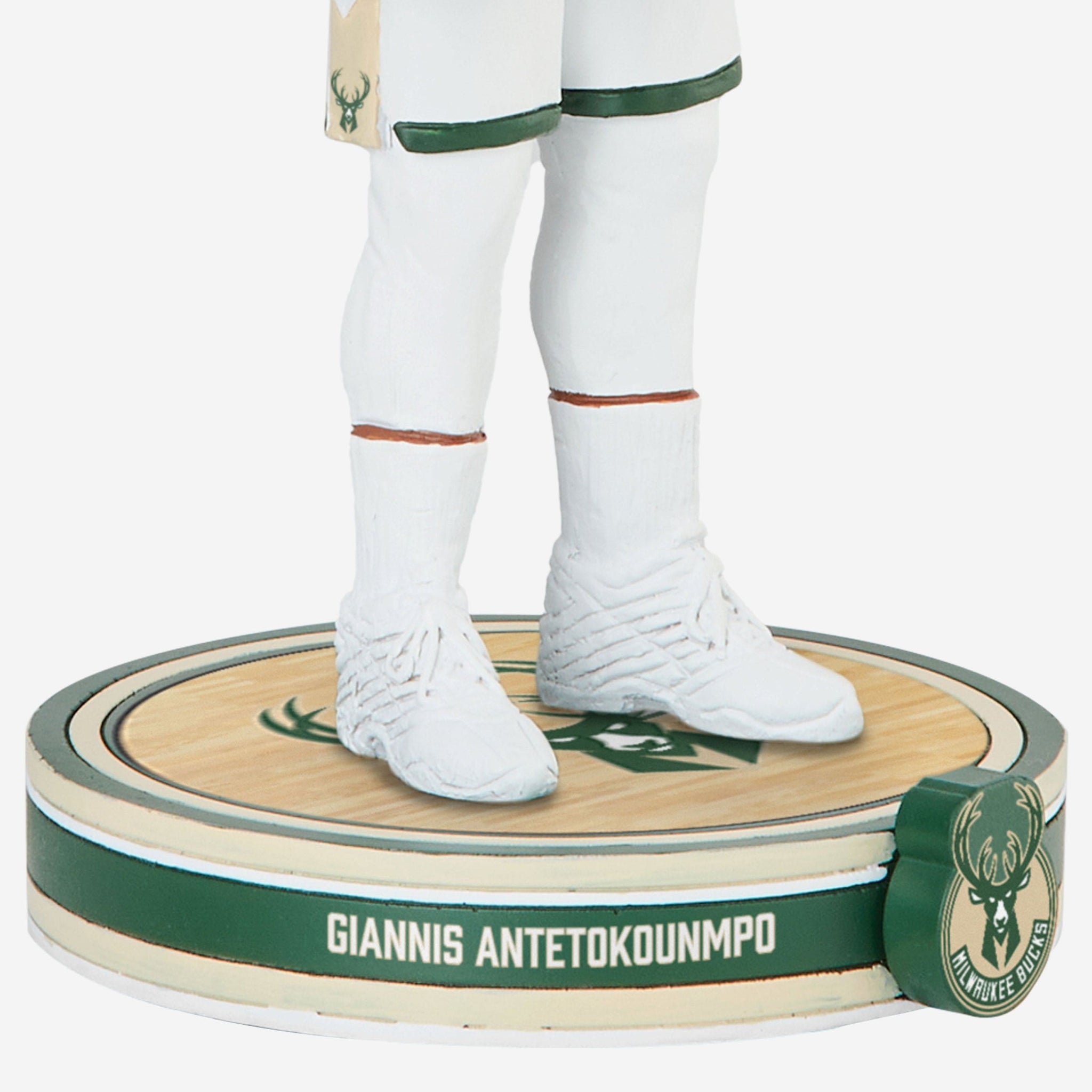 - Portrays Antetokounmpo posing and wearing his white game day uniform, ready to show out in style