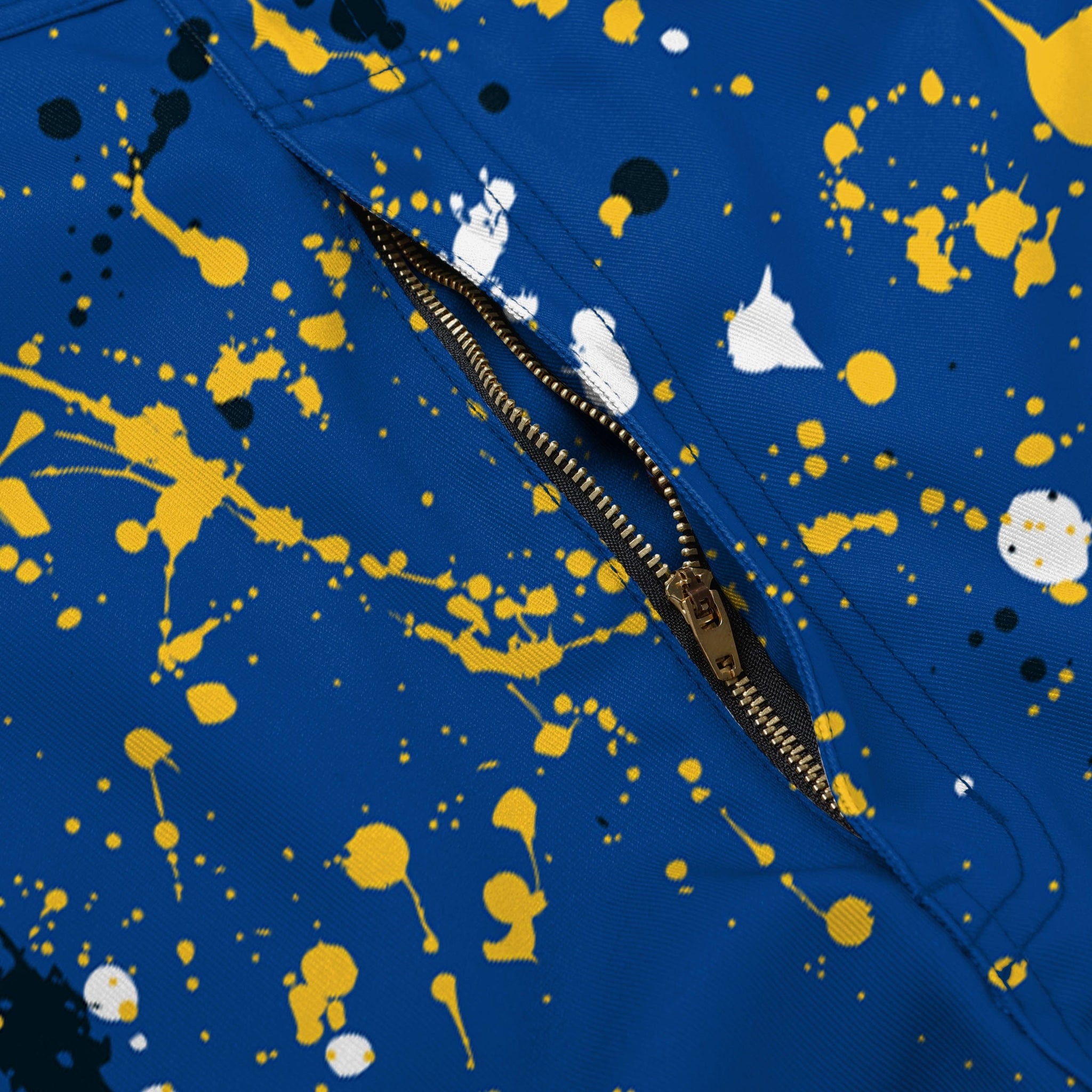 Show your team spirit in these stylish and comfortable Golden State Warriors Men's Paint Splatter Bib Overalls. With their all-over team-colored design and bold team logo display, these overalls are the perfect way to show your support for the Golden State Warriors while reminding everyone that your fandom is a masterpiece that even history’s greatest artists would bask in the glory of.