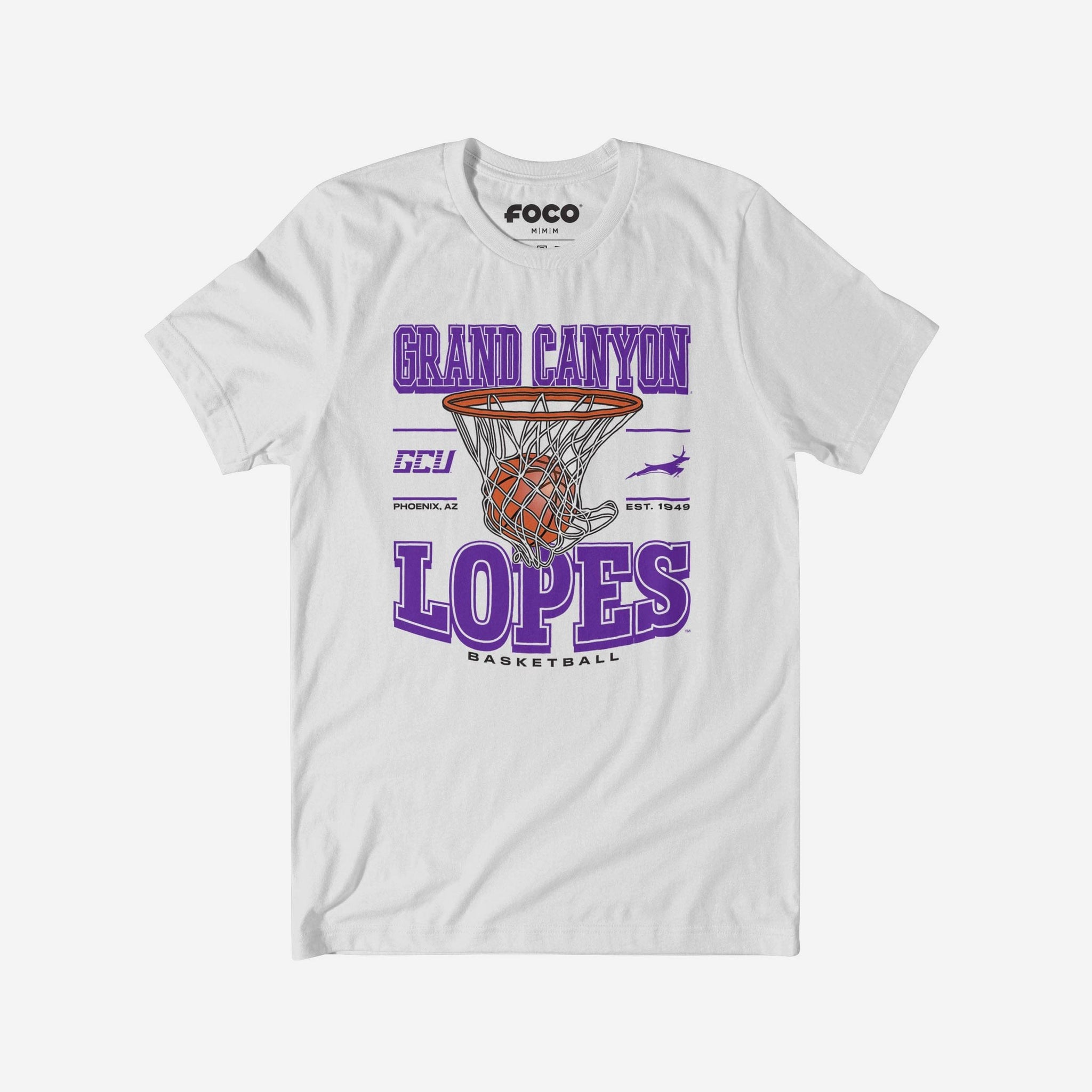 This top features a design that showcases your all-important team colors, a team logo display, a team wordmark name display, year of team establishment, and a basketball swishing through a net display meaning this t-shirt will prove your unmatched dedication to the Grand Canyon Antelopes when you're at the game or watching at home. In other words, this graphic tee is about to be your new favorite teammate.