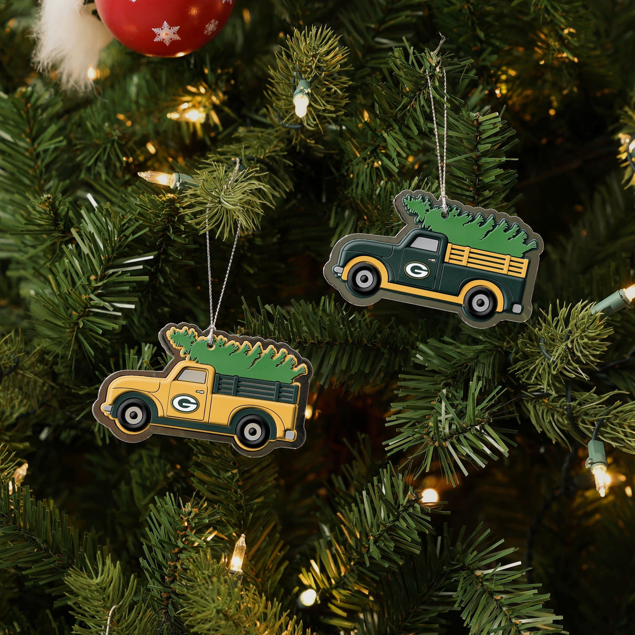 Keep on truckin'! It's all gas and no brakes this holiday season with these Green Bay Packers 2 Pack Flat Metal Truck Ornaments!