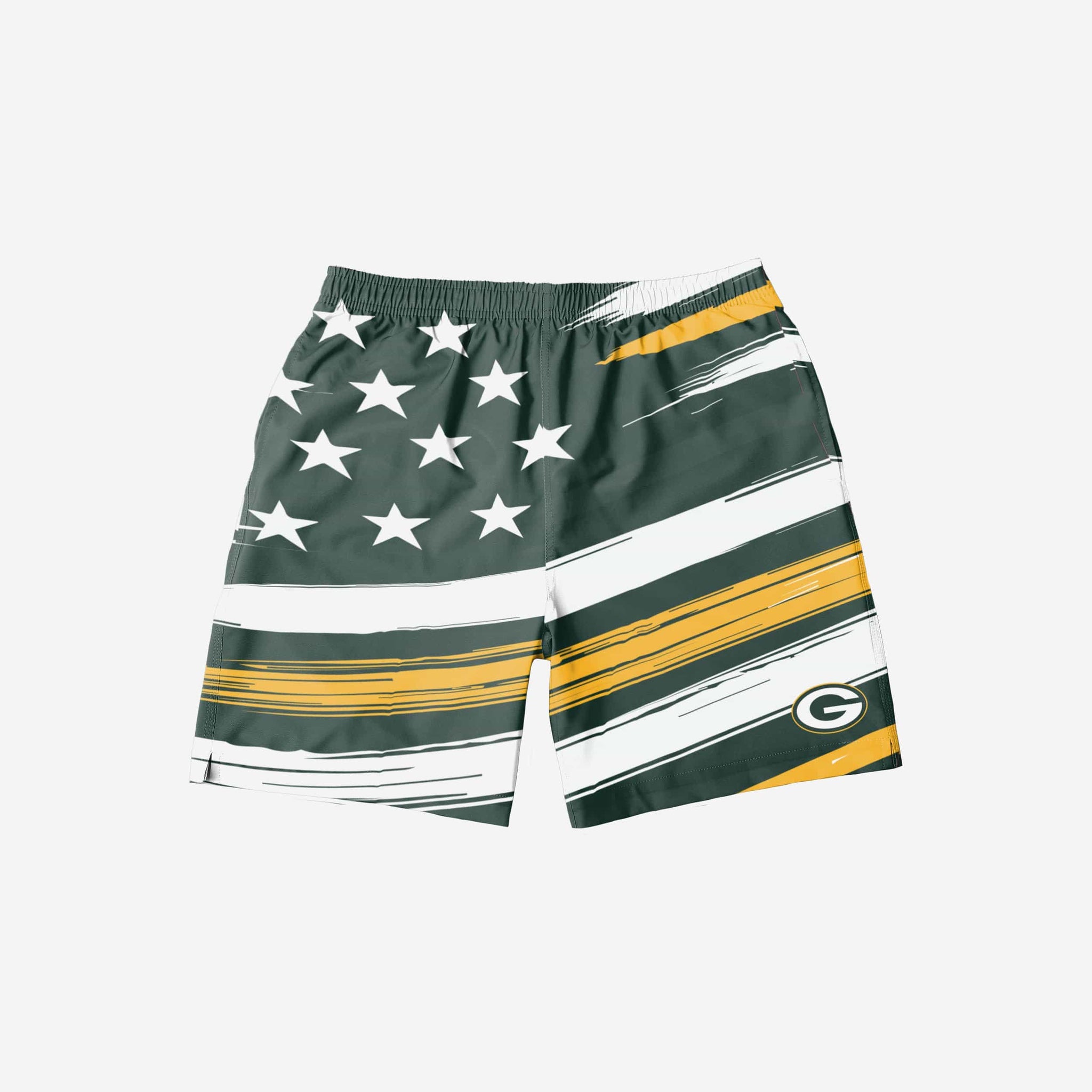 Whether it's at the beach, in the pool, or on the boardwalk, make sure you're ready to plant your flag as the best-dressed fan around. With these Green Bay Packers Americana Swimming Trunks, everyone will be pledging allegiance to your fandom.