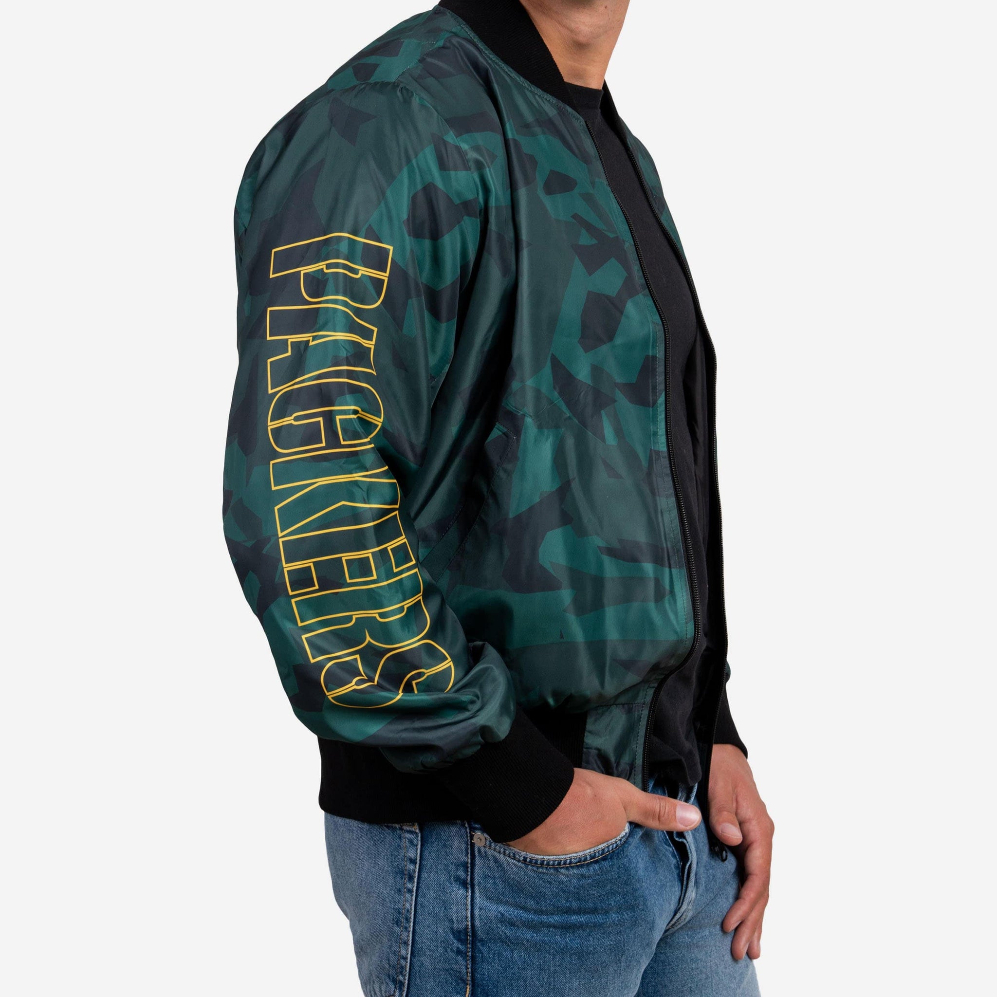 This Green Bay Packers Men's Camo Bomber Jacket is, as the kids say, the bomb dotcom. Show off some bombshell style and rep the team all at once!