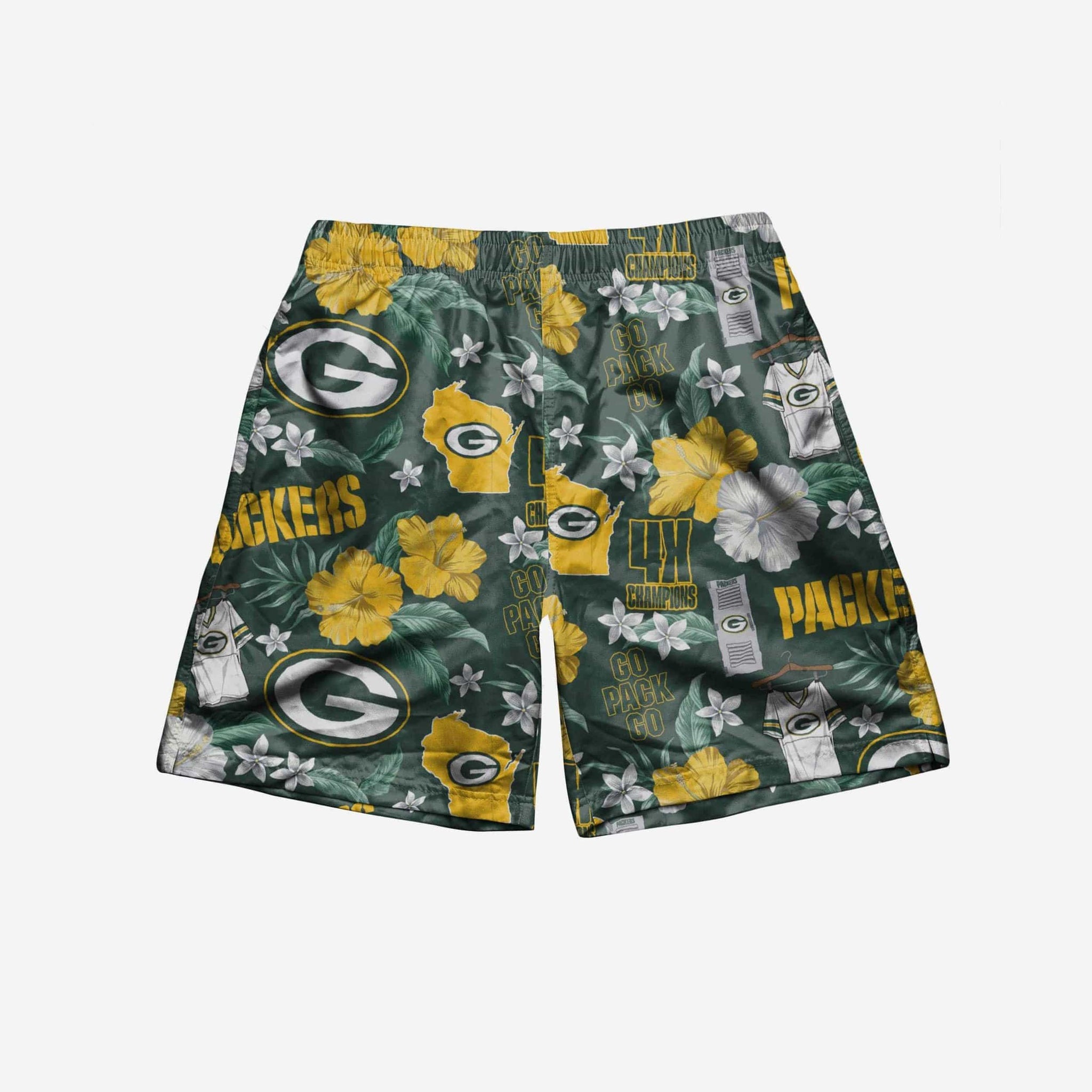 For every walk on the beach, cannonball into the pool, or game of Marco Polo, make sure you put on for your city. As in, put on these Green Bay Packers City Style Swimming Trunks for your city.