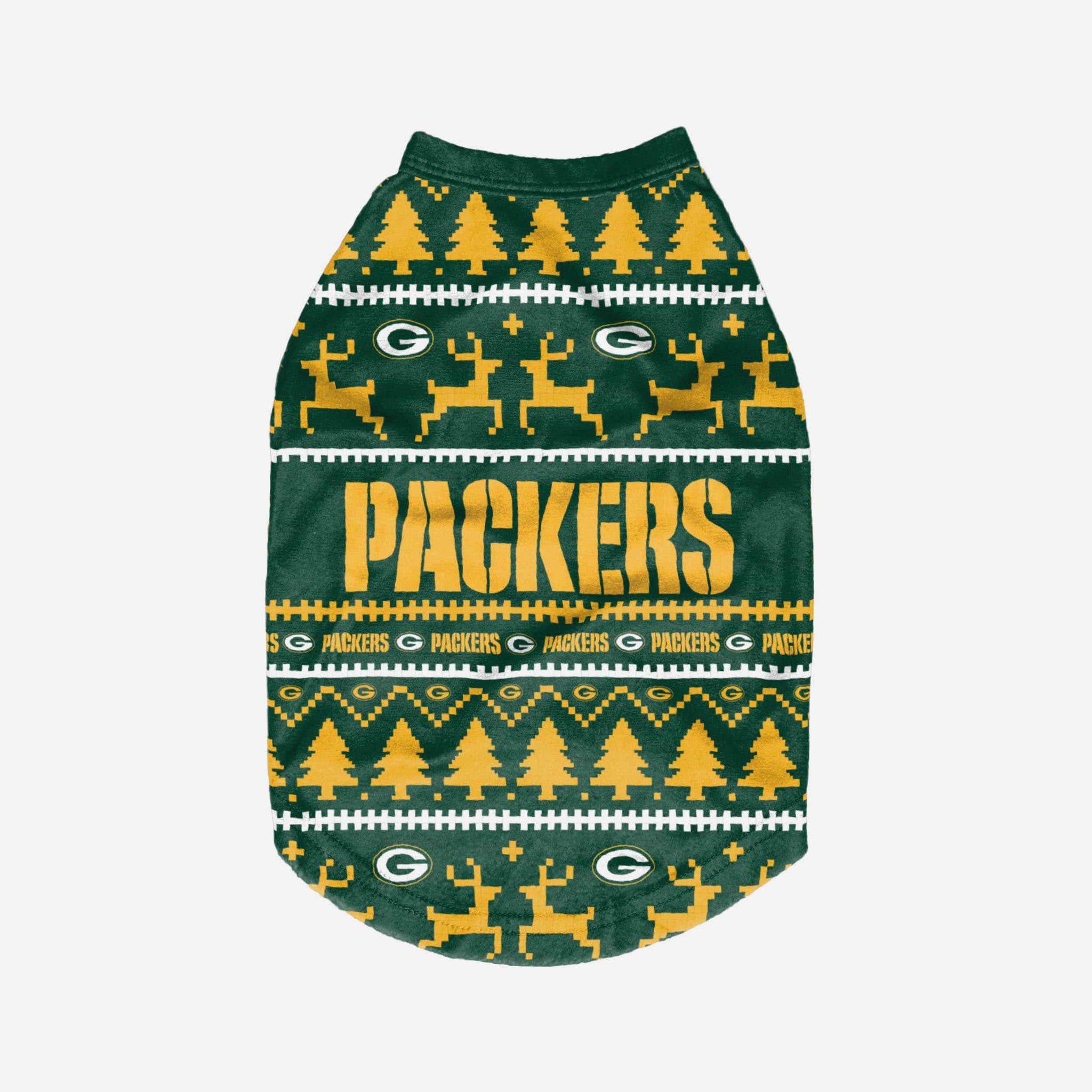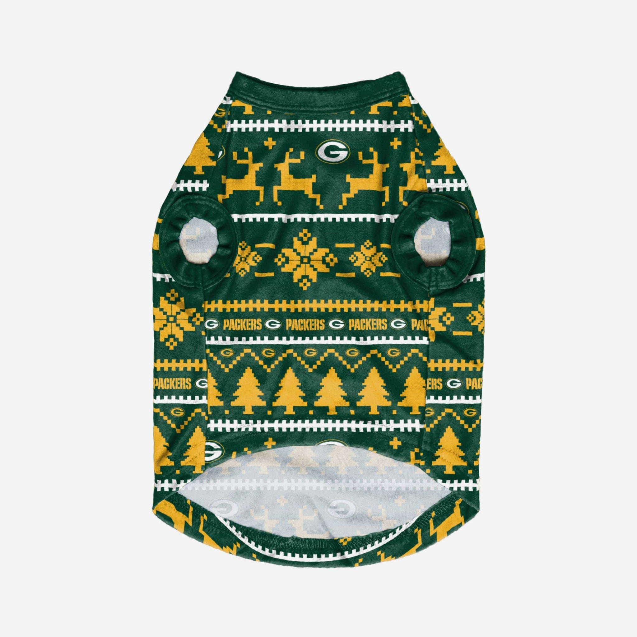 Show off your pet's holiday spirit with this dog sweater. Your good boy (or girl) will love this Green Bay Packers Dog Family Holiday Sweater so much, they'll be saying "woof bark awooo" (that's "thank you" in dog). Don't forget to match your canine's sweater with a set of matching holiday pajamas.