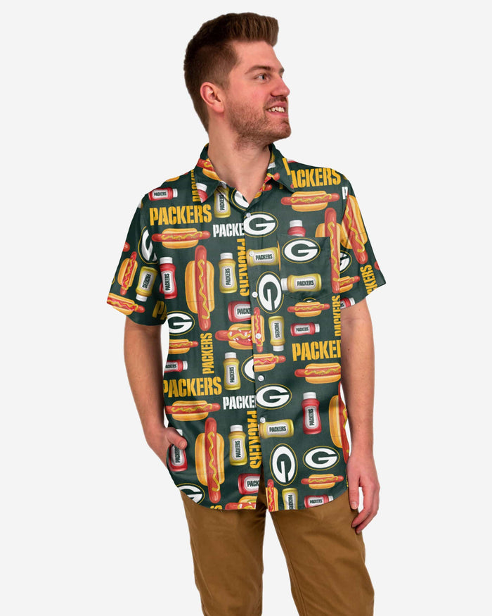 Enjoy some sizzlin' style made for the ultimate team fan and grilling aficionado. The fandom on display with this Green Bay Packers Grill Pro Button Up Shirt is as delicious as a freshly grilled hot dog. Mmm. Hot Dogs.